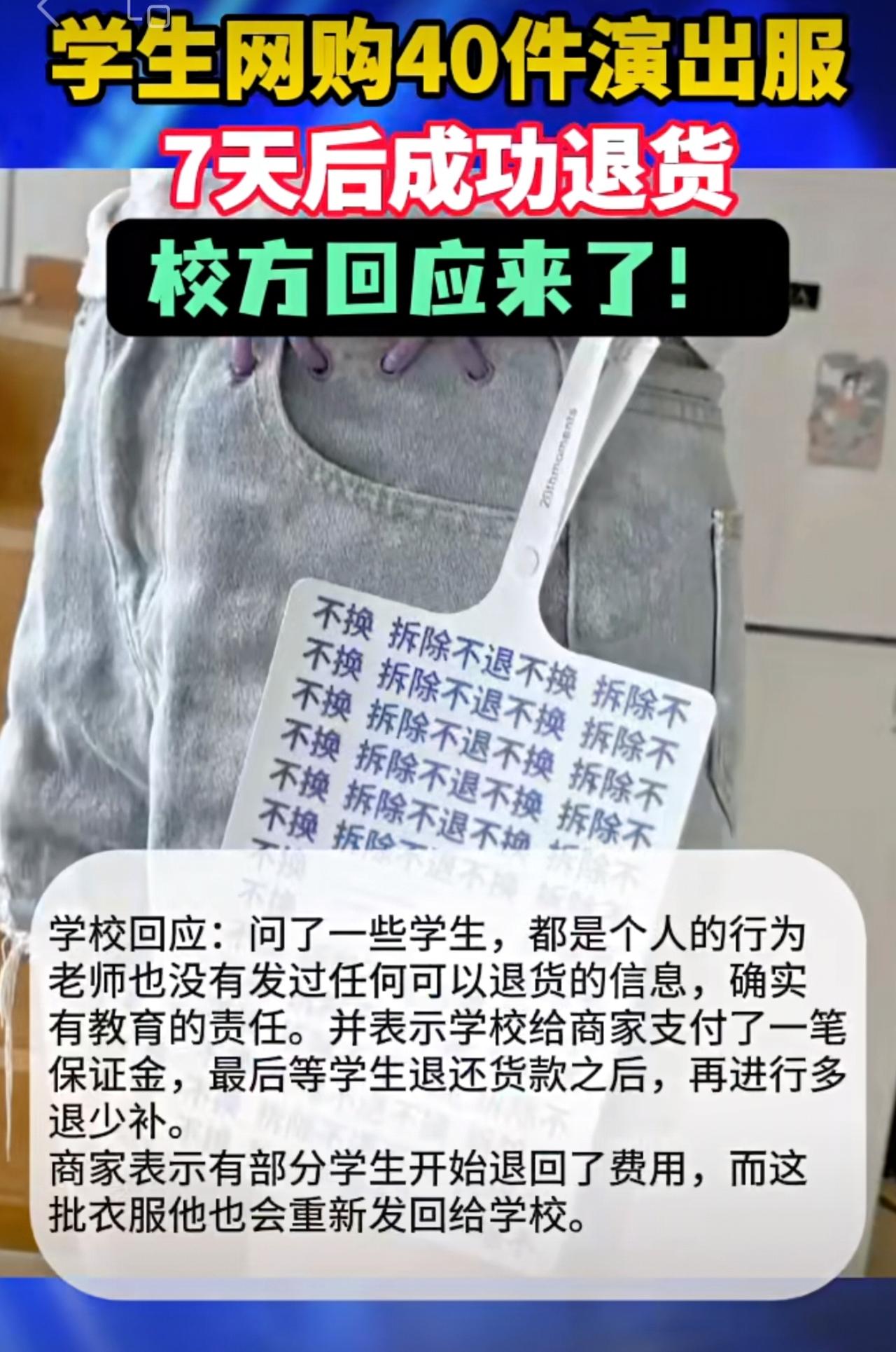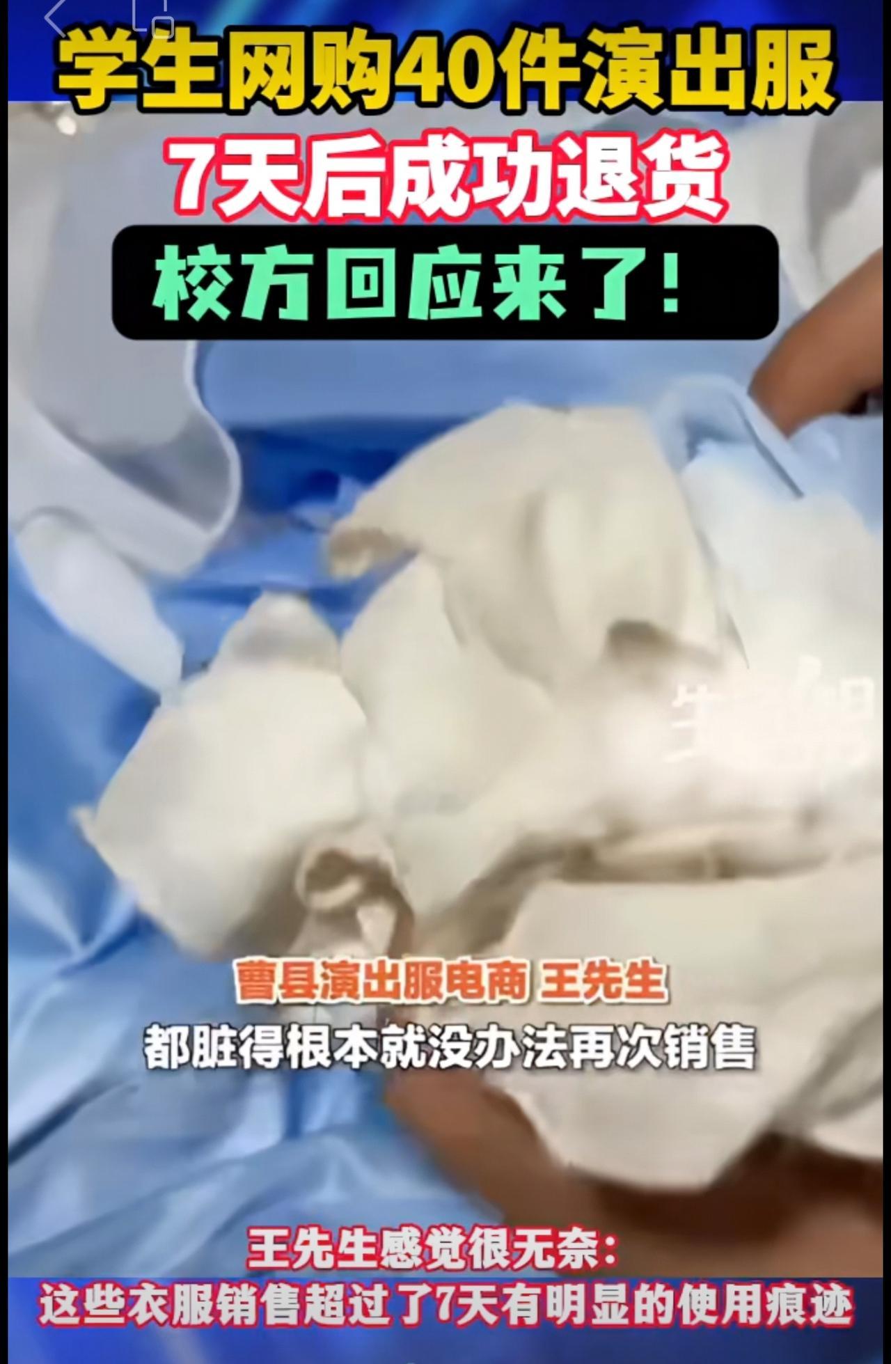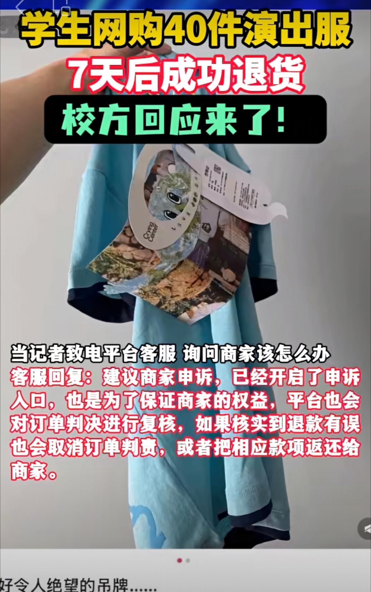 学生网购40件演出服,7天后成功退货,校方回应来了!