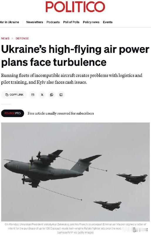 Politico消息:乌法两国均无资金落实近期签署的“10年100架‘阵风’战机供应协议” 一位欧盟高级外交官表示,“乌克兰计划在(瑞典)‘鹰狮’战机之外再采购‘阵风’,这令人颇感意外……他们没有资金。协议能否落地很大程度上取决于被冻结的俄罗斯资产。” 报道还指出,法国的“国家财政状况堪忧”,导致巴黎方面无法动用自有资金支付战机采购费用。 专家认为,该协议的落实“将耗费大量时间,无法应对战场上迫在眉睫的紧急局势”。 Рolitico认为,即便基辅成功组建由200余架新型西方战斗机组成的现代化空军,也将面临装备体系混杂的问题——部分西方国家正因后勤保障困难、飞行员及机械师培训难题,迟迟不愿支持这一方案。
