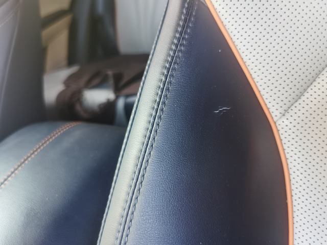 车内座椅扶手箱的包皮质量很差劲 车子刚开两年多,扶手箱,座椅开裂,现在这座椅还是已经换过一次了,又裂了,现在说是过保修不给换了,换过一次动力电池,这两天检测电池又有问题,过两天又要换一块,国产车想说爱你不容易! 又加了两张图,今天新贴的,眼不见心不乱得了