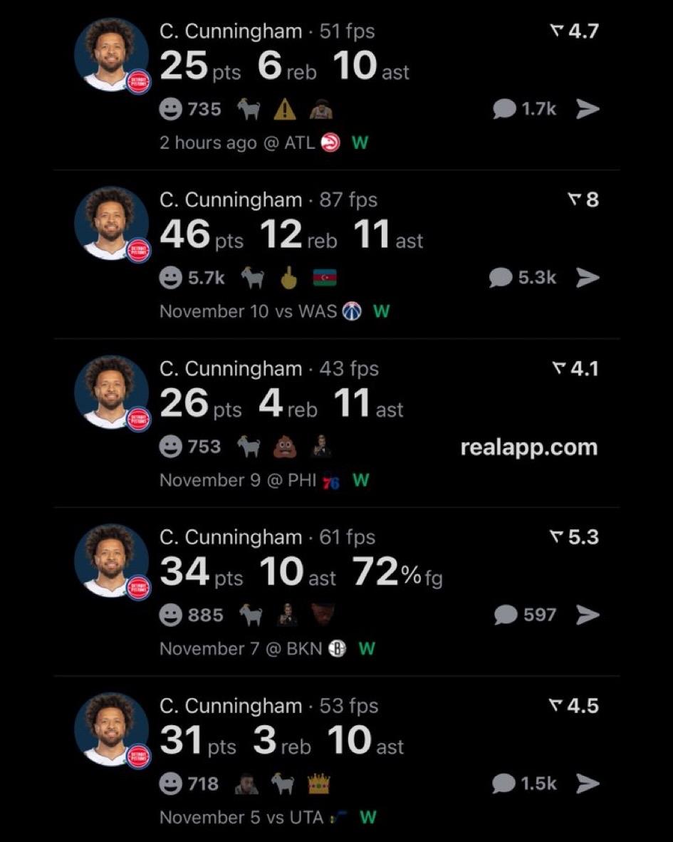 这个状元不水!4年后被验证,拿了大合同,又获得耐克公司的青睐,搞到签名鞋!活塞开季13胜2负,已经11连胜了,排名东部第一。 本场比赛,康宁汉姆25+6+10,并且成为继奥斯卡·罗伯特森之后,NBA历史上仅有的两位在五连胜中均得到 25 分 10 助攻的后卫。