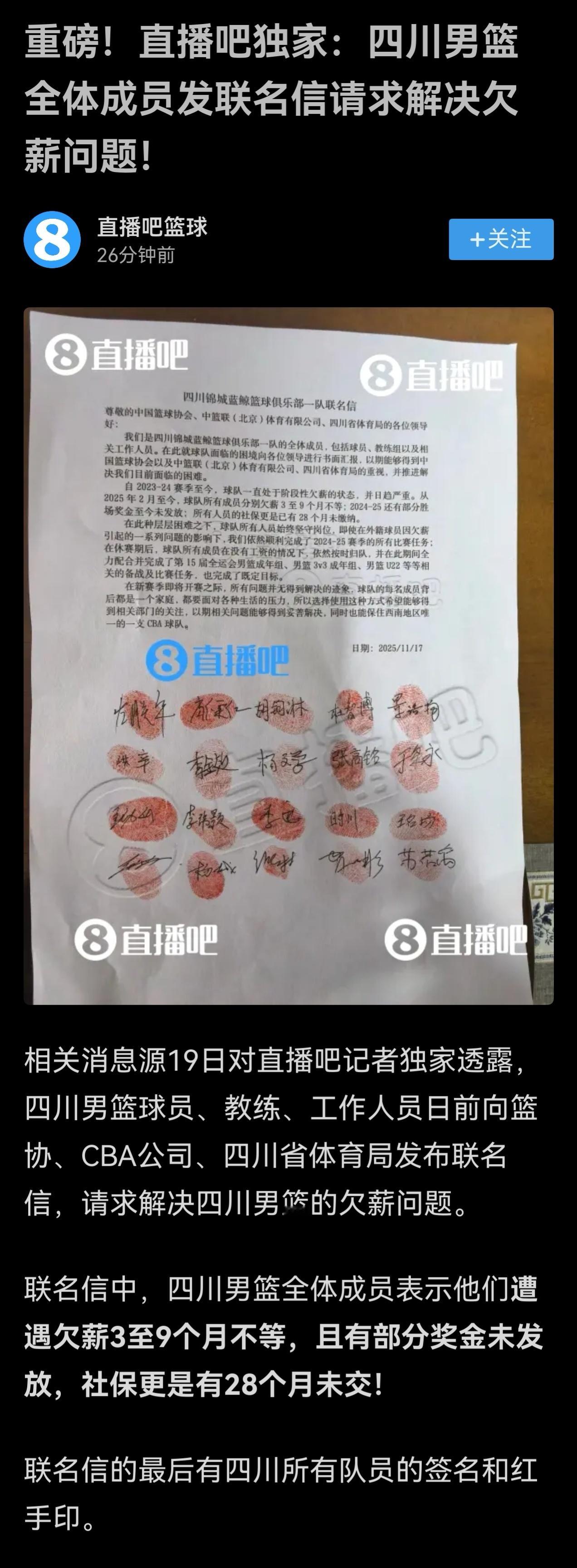 四川队爆雷了,球员,教练,工作人员发公开信讨薪。