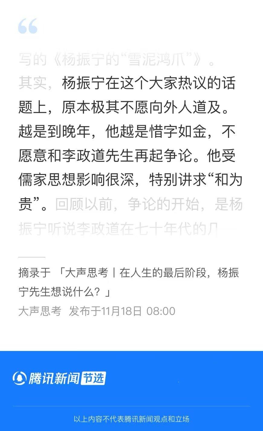 诺奖背后的署名次序之争,杨振宁8000字拆解半个世纪前的科学公案。