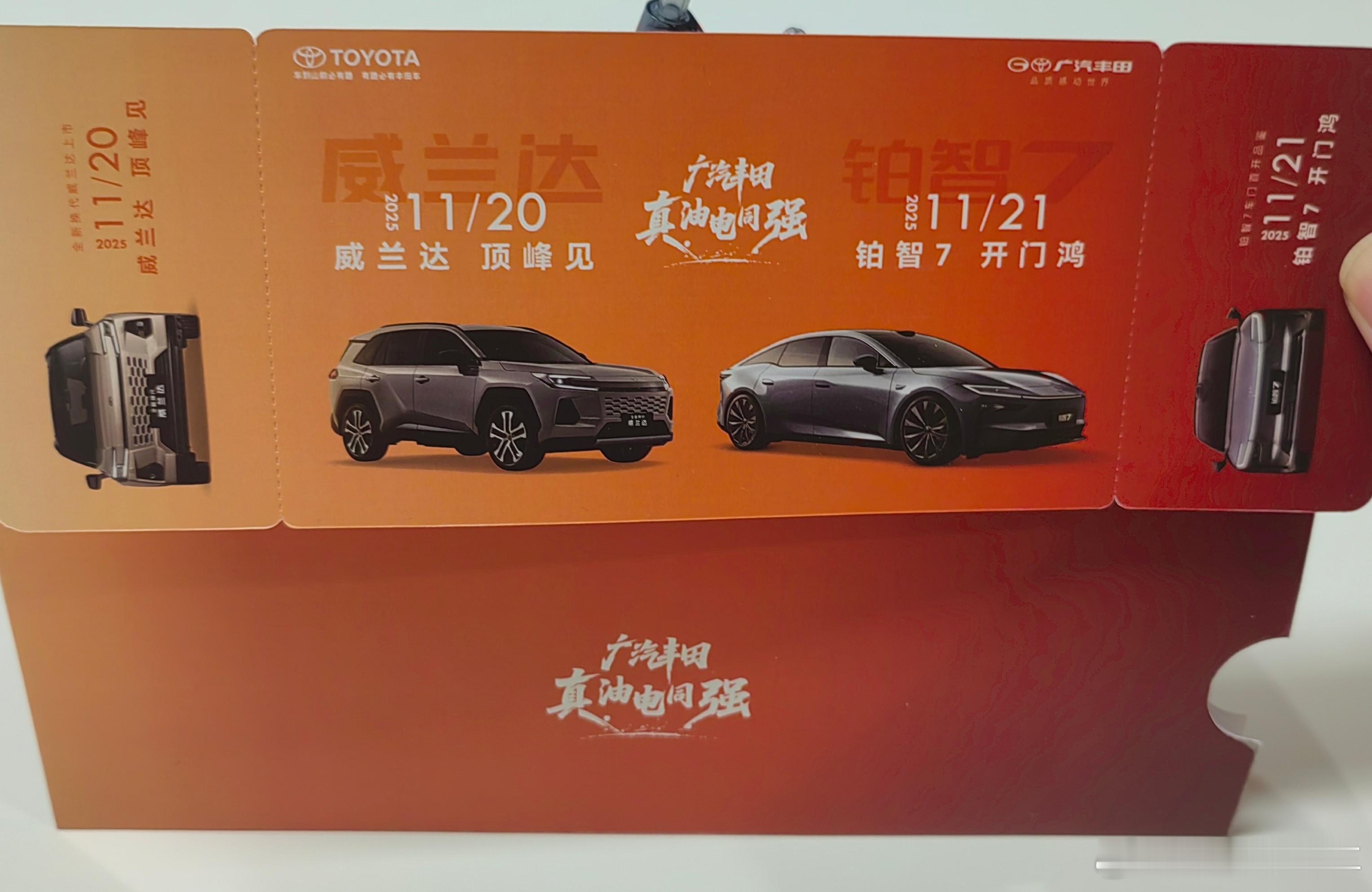 🔥广丰24小时双王炸预警!油电双线齐发,这波操作太顶了!刚收到广丰双车发布会邀请函,直接被信息量砸晕——未来24小时连开两场重磅发布会,一边是油车天花板换代全新威兰达,一边是智能电车新旗舰铂智7,油电同智同强,这波双线出击太有排面了!作为丰田全球最畅销SUV,全新威兰达这次带着“20万内混动首选”的底气而来,经典车型的智能化转型,想想就期待值拉满~ 而铂智品牌更是后劲十足,先有铂智3X上市半年月销破万、连续六个月销量暴涨的爆款战绩,“电车自燃、智能泊车辅助事故、电池衰减”厂家三担责政策,更是精准戳中用户痛点,安全感拉满!这次全新亮相的铂智7,是合资纯电车首款搭载华为鸿蒙座舱5.0的车型。从燃油混动的深厚积淀,到新能源赛道的稳扎稳打,广汽丰田“双轨并进”的产品矩阵太能打了!🚗💨