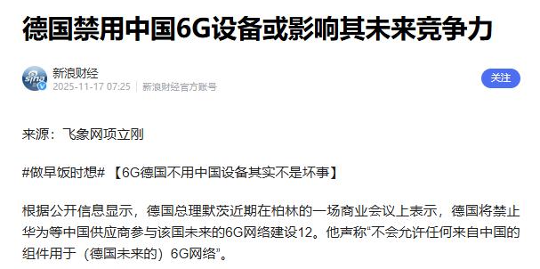 彻底决裂了! 德国总理默茨近日公开表示,绝不会允许由中方生产的组件进入德国未来的6G网络建设中来。 说白了,就是要把技术和安全议题政治化。可问题是——德国真的承受得起吗? 毕竟现在德国的5G网络里,近六成设备都是中国企业造的。华为在德国5G无线接入网59%的份额,相当于德国8.2万个移动通信站里,一半都搭着华为的技术骨架,德国电信三分之二的无线接入网、沃达丰55%的网络支撑全靠它。 现在突然要一刀切,2026年拆核心网、2029年换完外围设备,这哪儿是网络升级,分明是拿着纳税人的钱给自己拆家。 巴克莱银行算过一笔账,光替换华为设备的直接成本就高达25亿欧元,折合近200亿人民币,相当于德国年度基建预算的12%。 而这笔钱最终都要落到运营商头上,德国电信独自扛11亿欧元,占去年本土资本支出的23%,沃达丰和西班牙电信各摊7亿,等于各自年度核心投入的五分之一。 关键这只是硬件钱,后续的停机损失、设备调试、人员培训全是隐性窟窿。德国铁路光换900个华为基站就需4亿欧元,工期拖5到6年,高铁晚点率要升15%、货运效率降10%,而全德国的替换规模是它的数倍,这些损失根本没法算清。 默茨年初刚设了5000亿欧元基建基金,现在又要拨钱填通信的“政治窟窿”,难怪民众吐槽“钱没花在刀刃上”,毕竟德国联邦信息安全办公室去年还明确说华为设备没安全隐患。 技术上更是陷入死结,通信网络可不是拆了旧的就能装新的。华为设备和德国现有通信架构磨合多年,早形成稳定闭环,换成诺基亚、爱立信的设备,频段适配、信号协同全要重调,搞不好就出现区域性断网。 而且欧洲厂商根本没竞争力,华为设备比他们便宜15%-20%,峰值速率却高54%,这也是运营商当初选华为的核心原因。 英国就是前车之鉴,当年禁华为后额外花了31亿美元,5G建设推迟2-3年,网络中断率升40%,而德国对华为的依赖度比英国高得多,风险只会翻番。德国电信CEO早吐槽过“无线接入网不算关键设施,强行替换纯粹自找麻烦”,现在政策压头也只能硬扛。 这波操作还会砸了德国支柱产业的饭碗。汽车、高端制造全靠稳定5G支撑,网络调试期的信号波动,可能让生产线停转、物流追踪失灵。 欧盟内部还闹分裂,14个成员国反对减少对华设备依赖,塞浦路斯100%靠中国设备,奥地利、保加利亚依赖度超60%,德国硬推“去华为化”,很可能引发内部贸易摩擦。 6G领域才最要命,中国在相关专利上本就占优势,华为更是研发主力,默茨想彻底排除中国组件,等于把成熟技术拒之门外。 欧洲厂商就算满负荷生产,也只能满足六成替换需求,剩下的缺口得靠美国,这不过是“刚摆脱一个依赖,又跳进另一个陷阱”。 把技术安全搞成政治站队,最终买单的是德国的经济活力和民众的通信体验,这样的“决裂”,德国显然扛不起。
