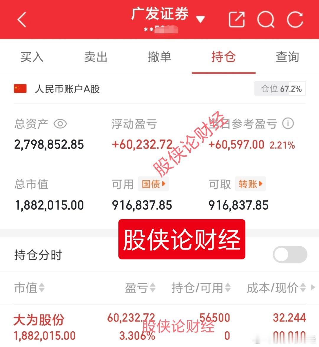 盯盘一个小时无从下手,各种高位背离等等,好在不负有心人,刚买大为没一会就涨停了。30万本金实盘记录(第116天)目前资金:2798852.85元今日买入:大为股份 sz002213[股票]我会把每天实盘记录下来,我相信实盘肯定一直往前冲,希望各位股友支持股侠!点赞富一生,评论888票票长虹!特别声明:这只是我个人的操作记录,不作为任何投资建议,更不是劝你们跟买!股市有风险,投资需谨慎!!!🙏🙏🙏