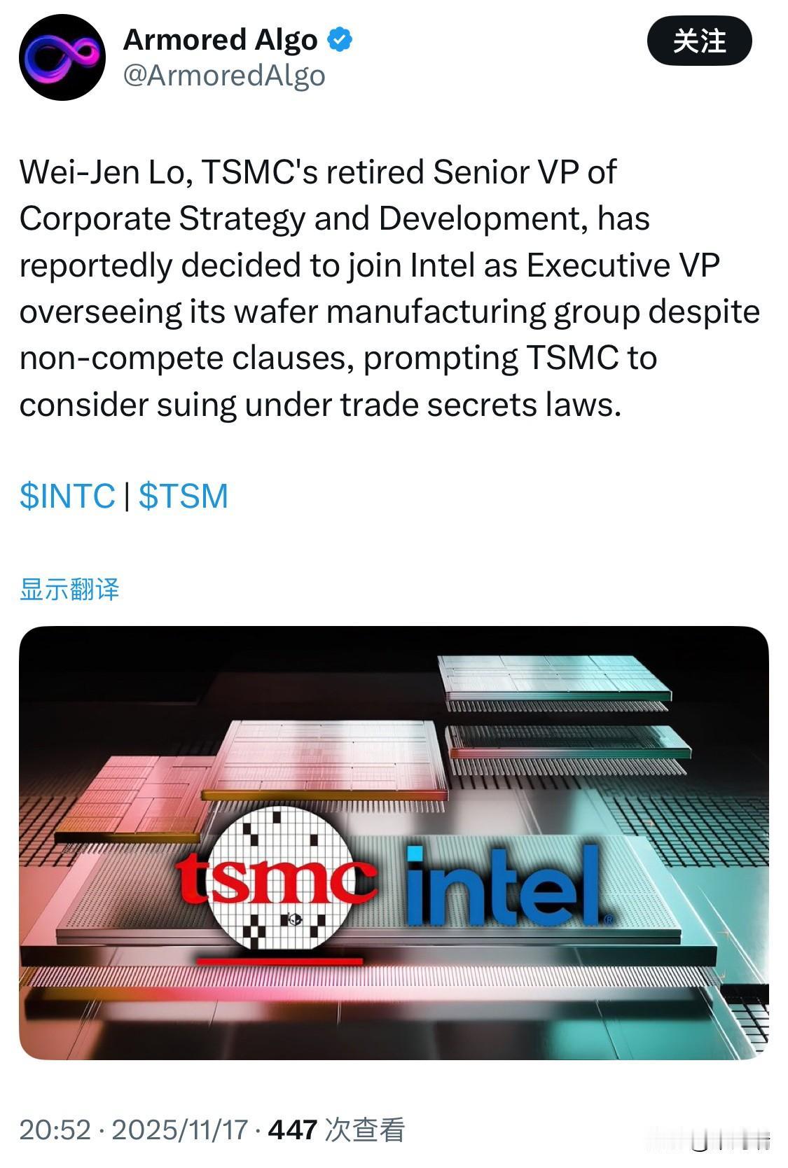 传闻台湾晶片代工巨头台积电前技术研发暨企业策略发展资深副总经理罗唯仁,今年7月退休时疑似利用职权携走2奈米等先进制程影印资料,并在10月赴任美国半导体巨头英特尔。 罗唯仁(Lo Wei-Jen),75岁,曾任台积电技术研发暨企业策略发展资深副总经理,2025年7月底正式退休,在台积电任职长达21年,是台积电创始人张忠谋信任的高层之一,也是极紫外光刻(EUV)技术突破的关键人物。 退休后,罗唯仁于10月被曝赴美国半导体巨头英特尔(Intel)任职,负责关键研发工作。 传闻称,罗唯仁在退休前,疑似利用高阶主管职权,要求下属向他进行技术简报,并影印或手写了大量涉及2纳米、A16、A14等最先进工艺节点的机密资料,可能多达20多箱。 台湾高等检察署智慧财产分署已主动立案,依“他字案”展开调查,以厘清是否涉及违反《国家安全法》或《营业秘密法》。 对于相关传闻和调查,台积电尚未作出具体回应,英特尔则表示不评论市场传言。台湾经济部长龚明鑫表示已派员了解情况。 目前,此案仍在调查阶段,台积电正在搜集证据,尚未正式对罗唯仁提出指控。