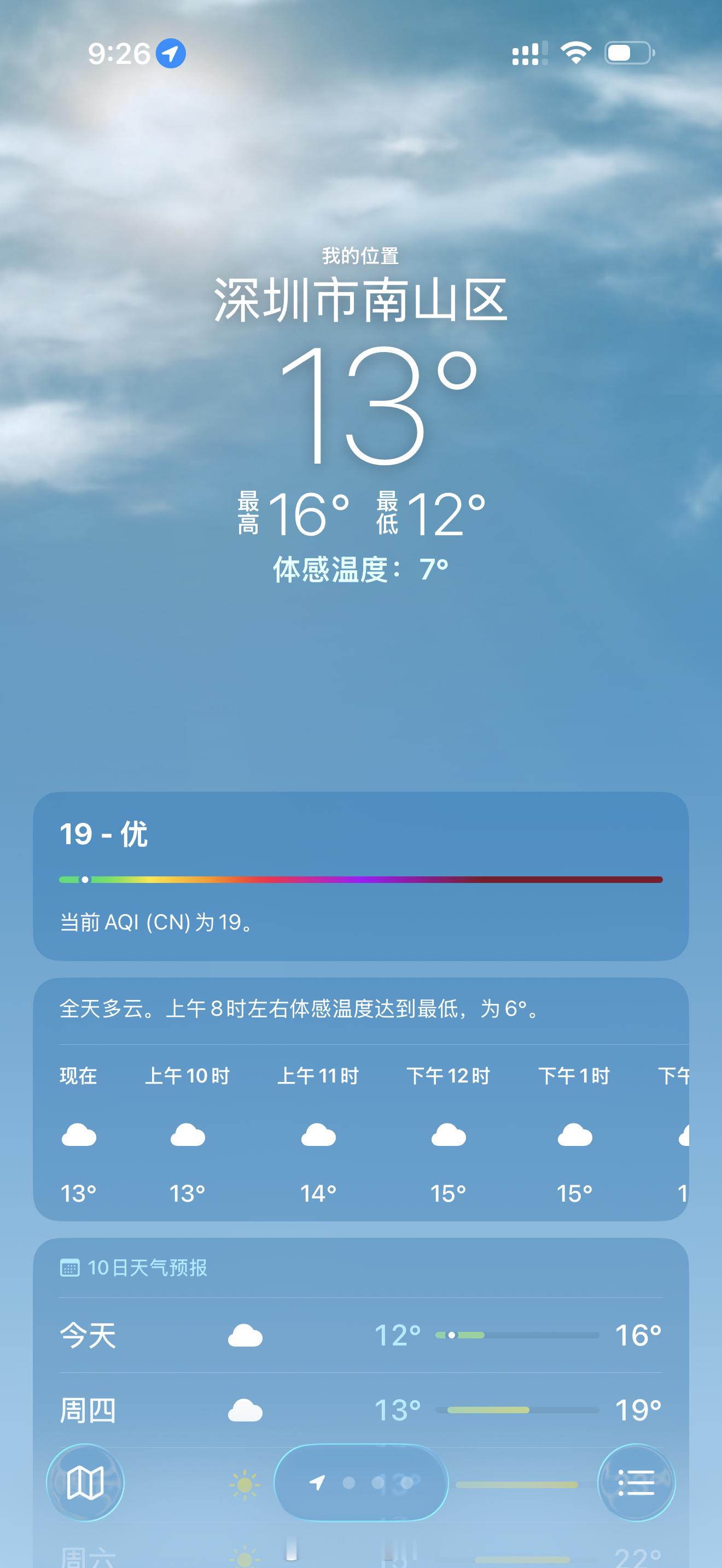 深圳,我真的没空跟你闹了…怎么可以一下直接去到13°C了昨天还是25°C穿短袖这个速冻…住多久怎么都不适应