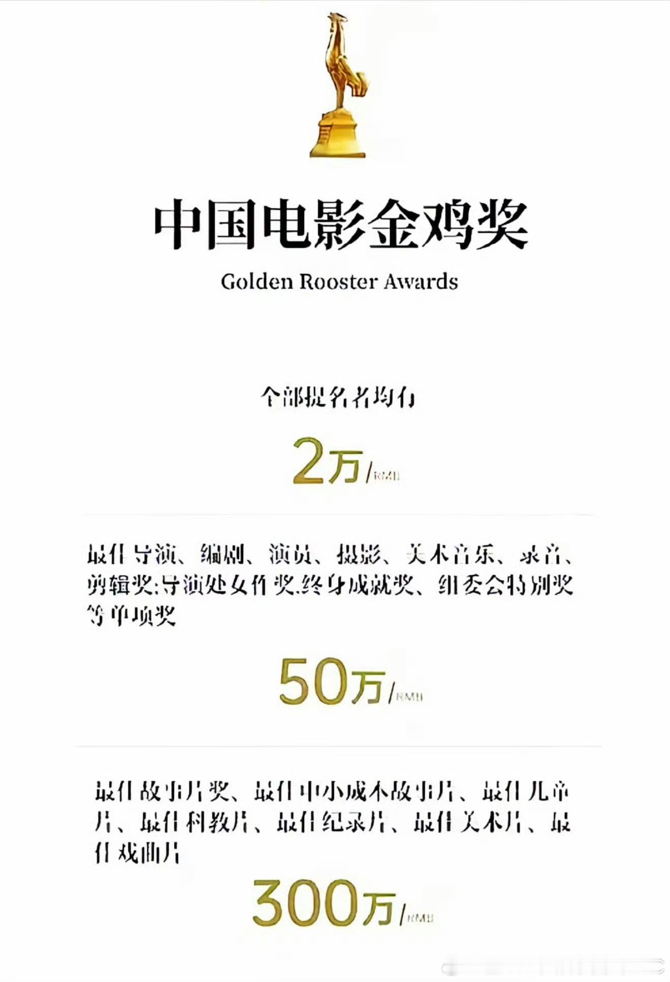 原来国内的电影电视剧获奖都是有奖金的最高的600万 最低的50万