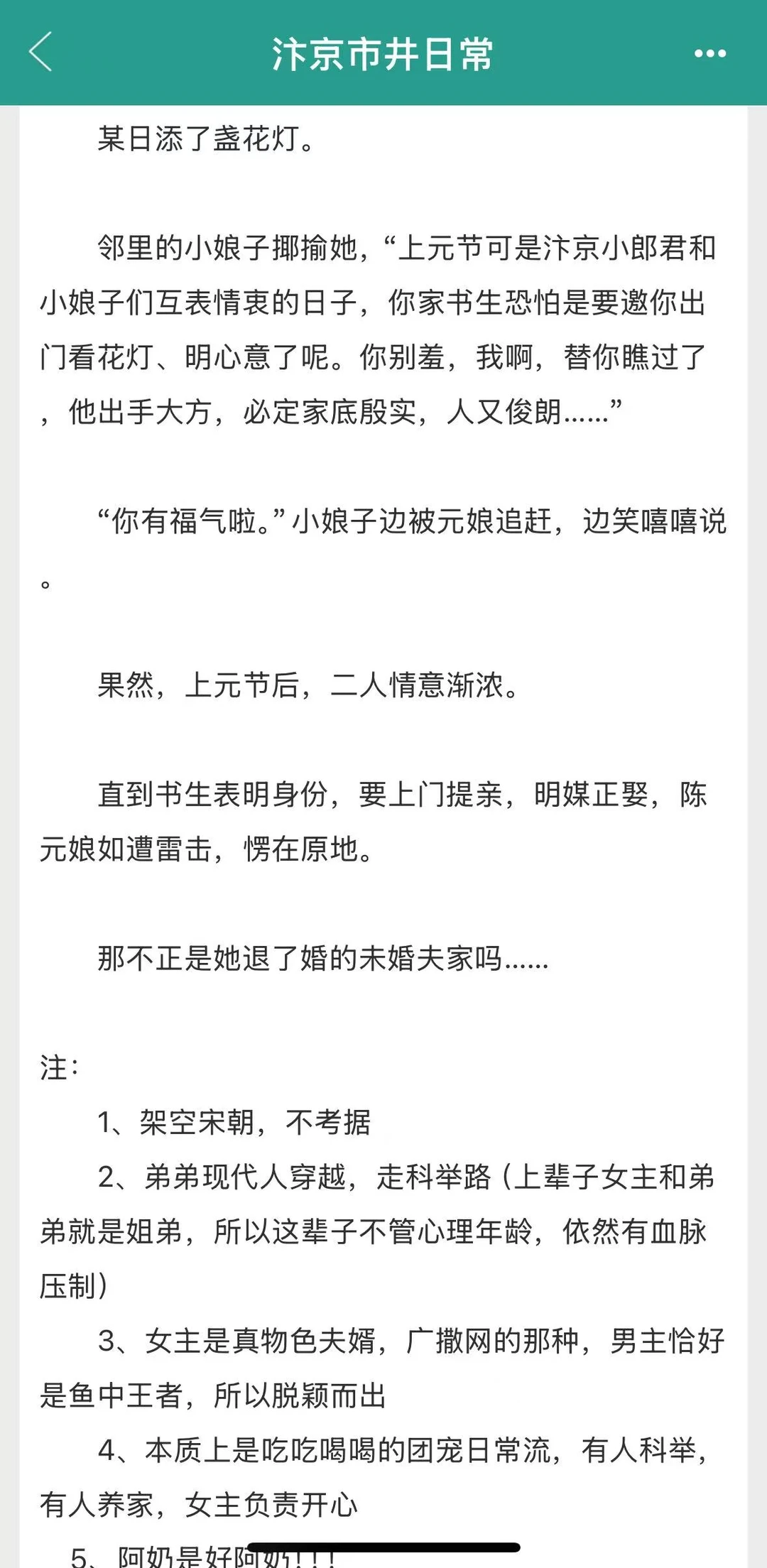 [氛围感R]《汴京市井日常》,作者:东边小耳朵 [氛围感R]明媚活泼市井小户女 x 端正持重清冷公子 [氛围感R]古言/种田文/市井生活/日常/宋穿/群像 [种草R]作者大大写种田文非常拿手,不管是故事背景介绍、时代风土人情描绘,还是人物形象塑造,都非常传神且真挚。 [种草R]作者用极具烟火气的文字,以女主角的成长过程,以及情感变化为支点,将小人物的日常描绘的细致入微;同时围绕女主角的生活,也出现了不少极具特色的人物,且各个人物之间各有特色和性格,非常值得一读。