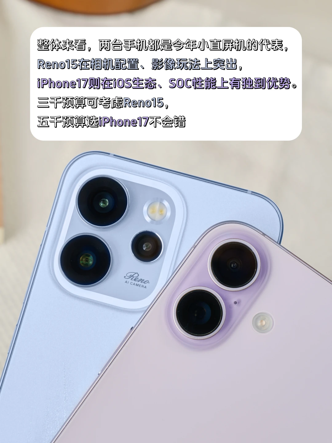 其他快充、电池、信号不用说了吧,Reno15有更大的6200mAh,80W快充充电快等等,2999的Reno15和5999的iPhone17[吧唧R]你们会怎么选?
