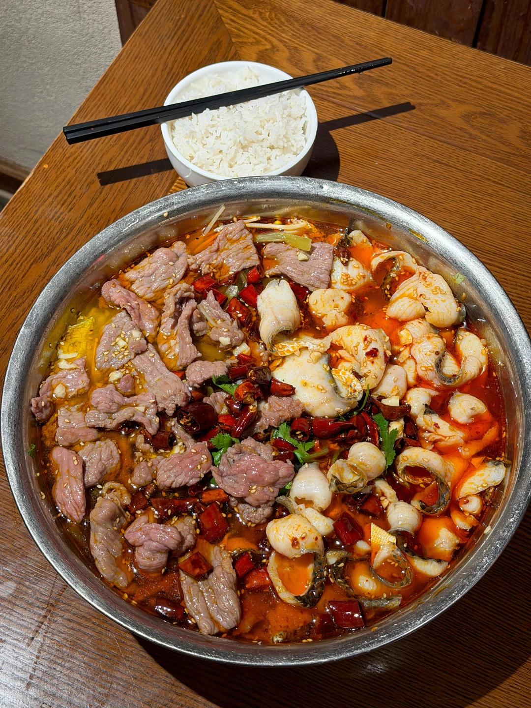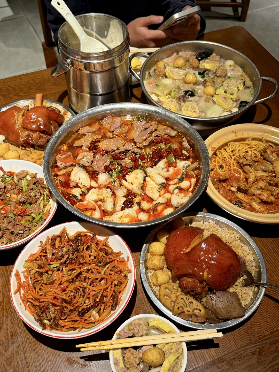 这周来吃三次了!价格实在份量足! 本地人都夸好吃,开了蛮多年的社区苍蝇馆子! 叫:小湘钵,听说何老师维嘉都来吃过! 每次都点全家福火锅,肘子饭,锅贴都吼吼吃!