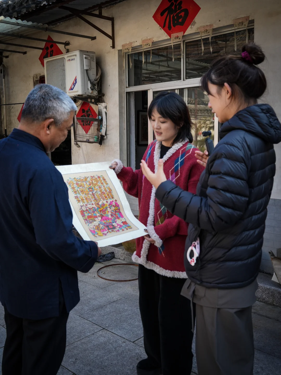 在潍坊拍摄的几天📹 阳光很好、风很轻柔⛅️ 像是提前为2026存下一点好运 这已经是我们团队第无数次来潍坊 也是和年画工坊合作的第三年~ 手艺人依然待我们如亲人😄 今年依旧与年画手艺人深度合作 并且听取大家对于年画的建议‼️ 会在尊重传统工艺的基础上 加入更贴近当代生活的设计表达 2026年五福摇钱树即将上线 敬请期待啦💥💥