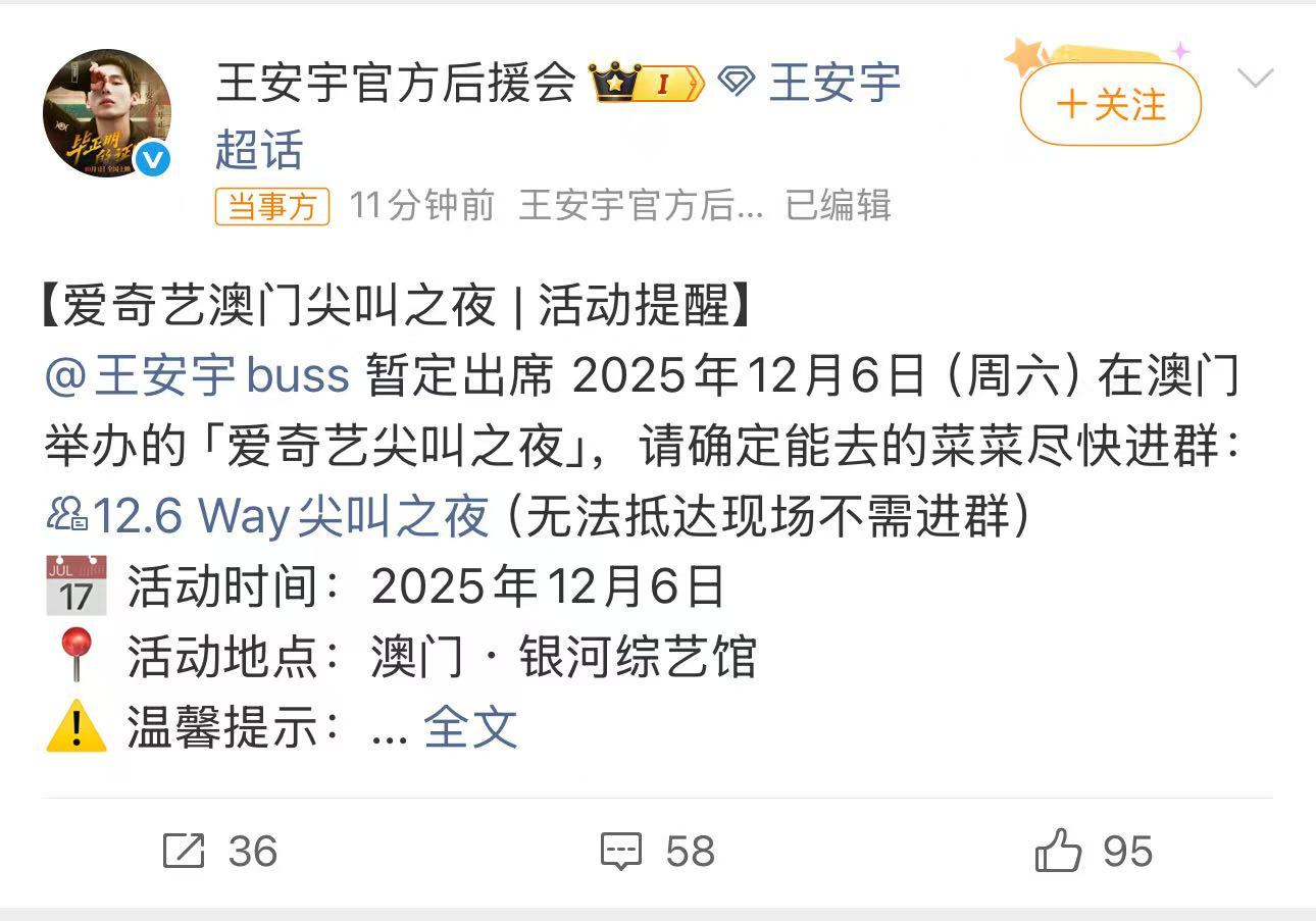 任嘉伦也确认参加澳门尖叫之夜啦,何贤是得到