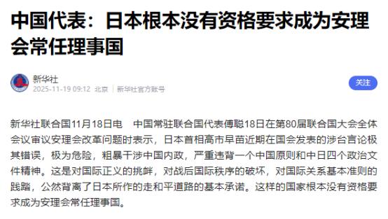 北京时间11月19日凌晨,中国常驻联合国代表傅聪说:“日本根本没有资格成为联合国常任理事国。”这一句话,把日本近几年的美梦都打碎了。   这些年,日本为了谋求成为联合国常任理事国,可谓不遗余力。安倍晋三当首相时,就把“入常”当作外交头等大事,跑遍世界各地拉选票。   岸田文雄接棒后更不含糊,联合国的各种会议上都有他刷存在感的身影,掏腰包也格外大方,联合国的不少项目里都能看到日本资金的痕迹。   日本最常挂在嘴边的理由,就是自己给联合国交了很多钱,贡献度高。它的会费占比常年排第三,仅次于美国和中国,有时还会主动追加一些“自愿捐款”。东京政府算盘打得噼啪响,觉得钱花到位了,常任理事国的椅子就该有自己一把。   为了显得“有担当”,日本还积极派自卫队参与联合国维和行动。从南苏丹到黎巴嫩,不少维和任务区都能看到日本士兵的身影。   但明眼人都清楚,这些行动更像一场表演。日本自卫队有严格的“交战不还手”限制,真遇到危险根本起不到实质作用,说白了就是去凑个数、混履历。   最用心的还是拉帮结派,日本拉着德国、印度、巴西凑了个“四国集团”,年年联名向联合国提交安理会改革方案,核心诉求就是给自己都安上个常任理事国席位。他们还到处游说发展中国家,承诺给好处,就盼着投票时能多些支持。   傅聪的一句话,直接戳破了日本的幻想。这话不是空穴来风,背后藏着实打实的道理。联合国常任理事国的席位,从来不是花钱能买的,那是二战反法西斯胜利的成果。当年罗斯福提出“四警察”构想,就是要让在反法西斯战争中流血牺牲的大国,来守护战后和平秩序。   日本是二战战败国,这是它绕不开的身份。联合国宪章里早就写清楚,要防止德日这样的侵略国再搞事。现在日本连侵略历史都不敢正视,怎么有脸谈“守护和平”?去年高市早苗还发表错误涉台言论,粗暴干涉中国内政,这完全违背了中日之间的政治文件精神。   光干涉中国内政还不够,日本在历史问题上更是遮遮掩掩。首相和大臣们年年去参拜靖国神社,里面供奉着二战甲级战犯。教科书里把“侵略”改成“进出”,把慰安妇问题说得轻描淡写。连自己的历史烂账都不清理,这样的国家怎么可能承担起常任理事国的责任?   更讽刺的是日本一边喊着“维护国际秩序”,一边却在破坏规则。核污染水排海这件事,它根本没和周边国家好好商量,就自顾自把核废水往太平洋里倒。联合国相关机构的报告都不敢打包票说绝对安全,日本却硬说“没问题”,把全人类的健康当赌注。   俄罗斯早就表态,反对日本入常,觉得它缺乏基本的资格。中国的态度更是明确,傅聪的发言就是给日本划下红线。常任理事国手里的否决权,是用来阻止战争、维护正义的,不是给侵略历史不清不楚的国家用来谋私利的。   日本现在该醒醒了。与其花心思钻营入常,不如先好好反思历史。承认侵略罪行,真诚向受害国道歉,踏踏实实地做些对地区和平有益的事。要是连这些都做不到,就算再拉多少盟友、交多少会费,常任理事国的大门也永远不会为它打开。傅聪的话,就是给日本的美梦敲了丧钟,再不清醒就真没救了。