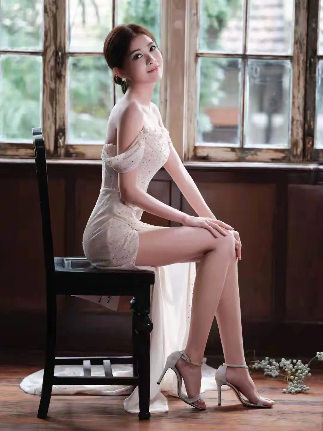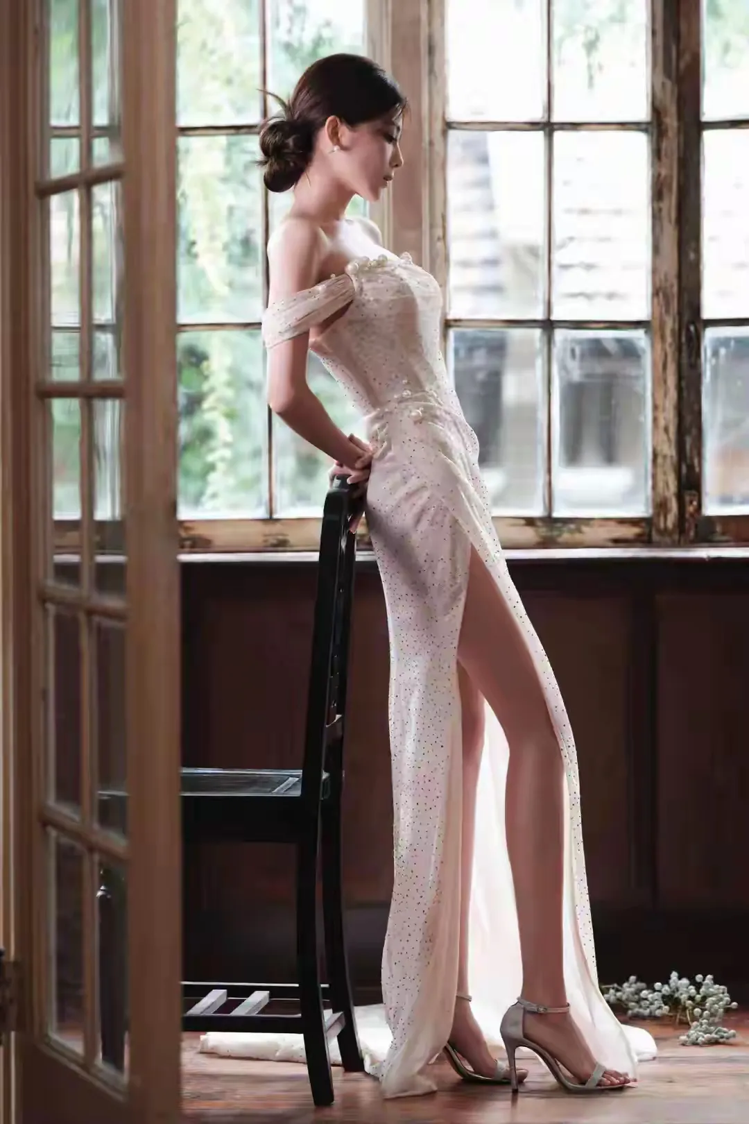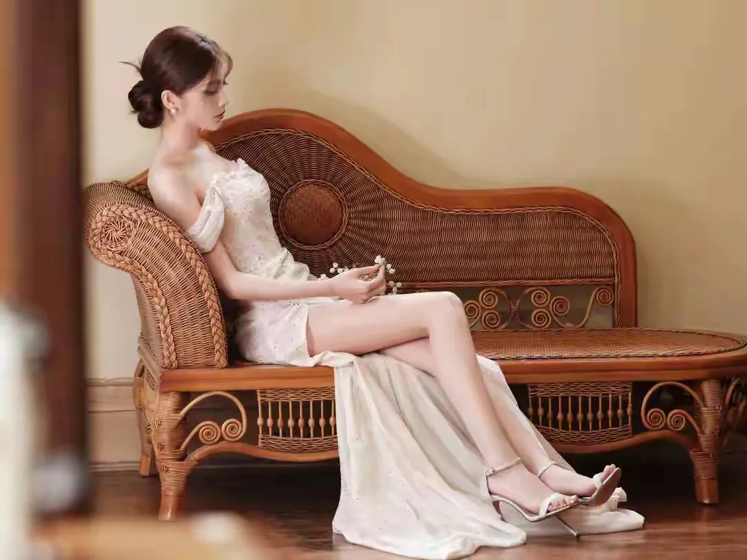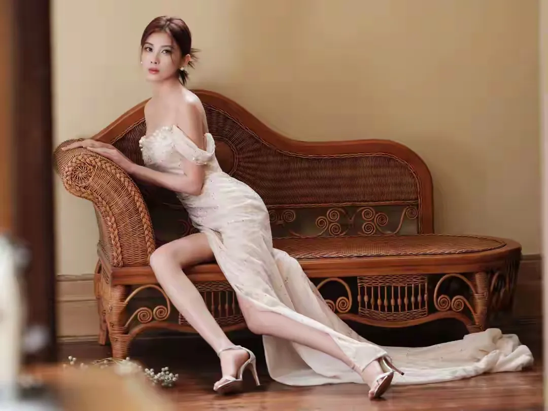 非常精致的白色侧边开衩裙小姐姐,只有自信才能光芒四射