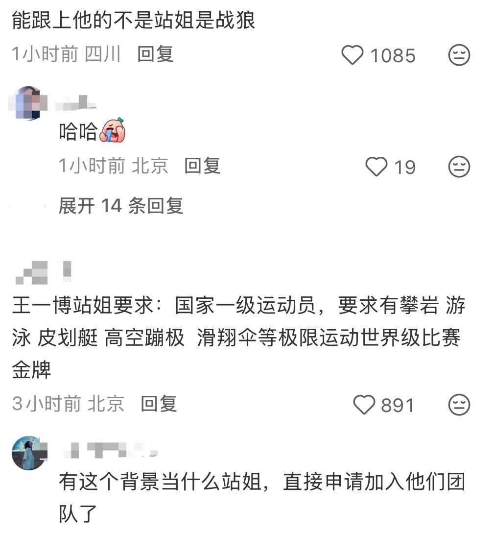 刷到这条评论区给我笑的🤣问:王一博天天在户外站姐咋不出图“站姐也要有地方站吧”“是站姐不是壁虎”“能跟的上王一博的不是站姐是战狼”