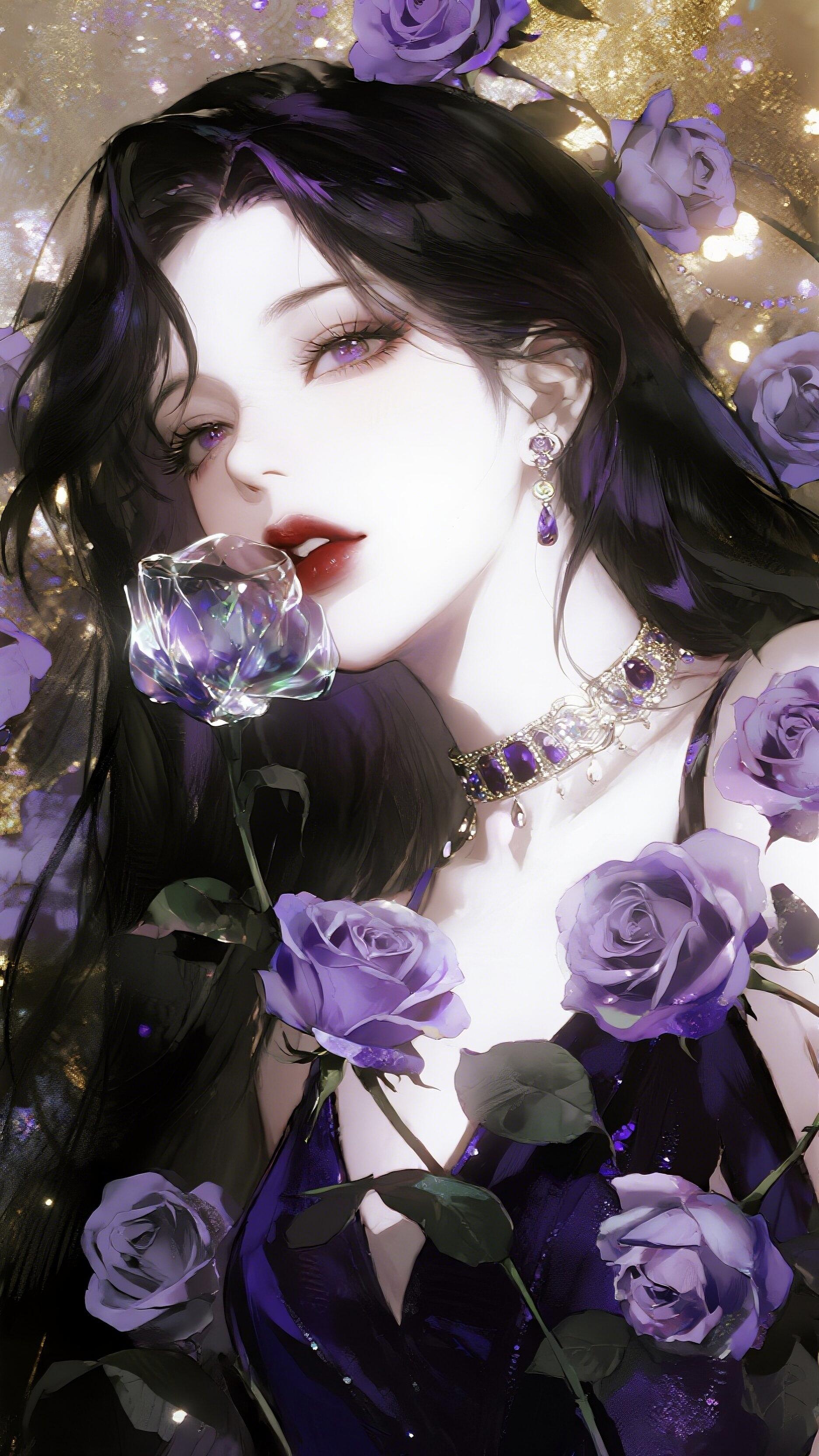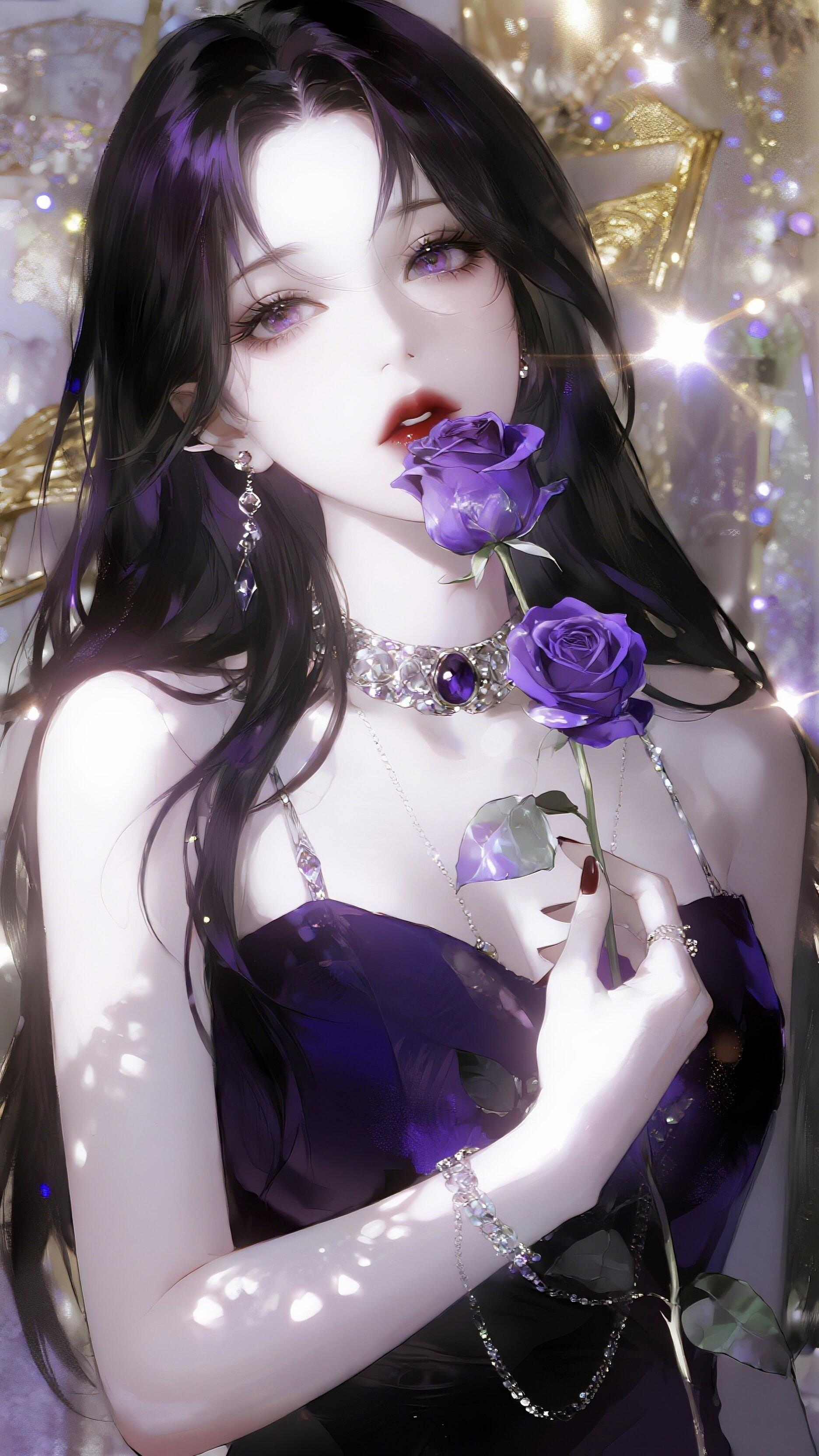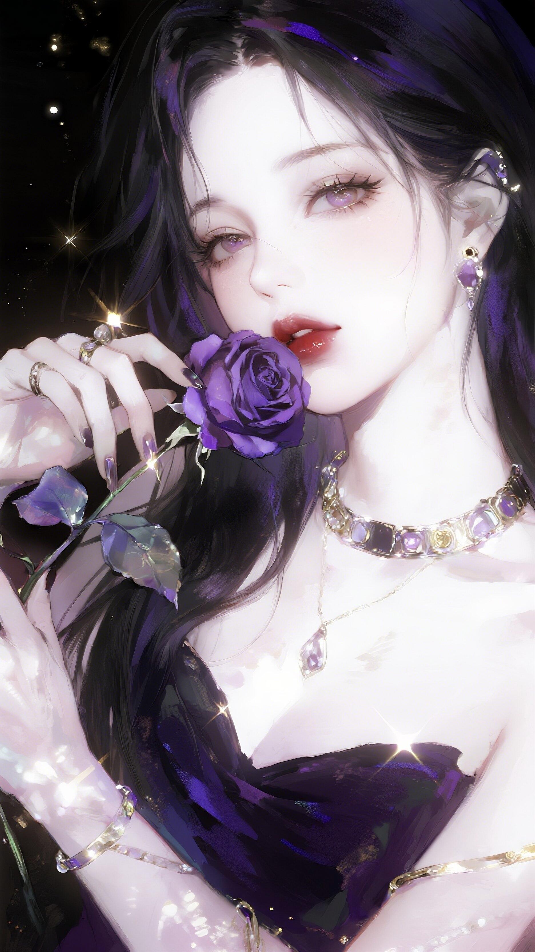 紫色系冷艳美人紫色梦幻女神 紫色衣服美女 深紫色长裙 紫色禁欲 紫色吊带美女