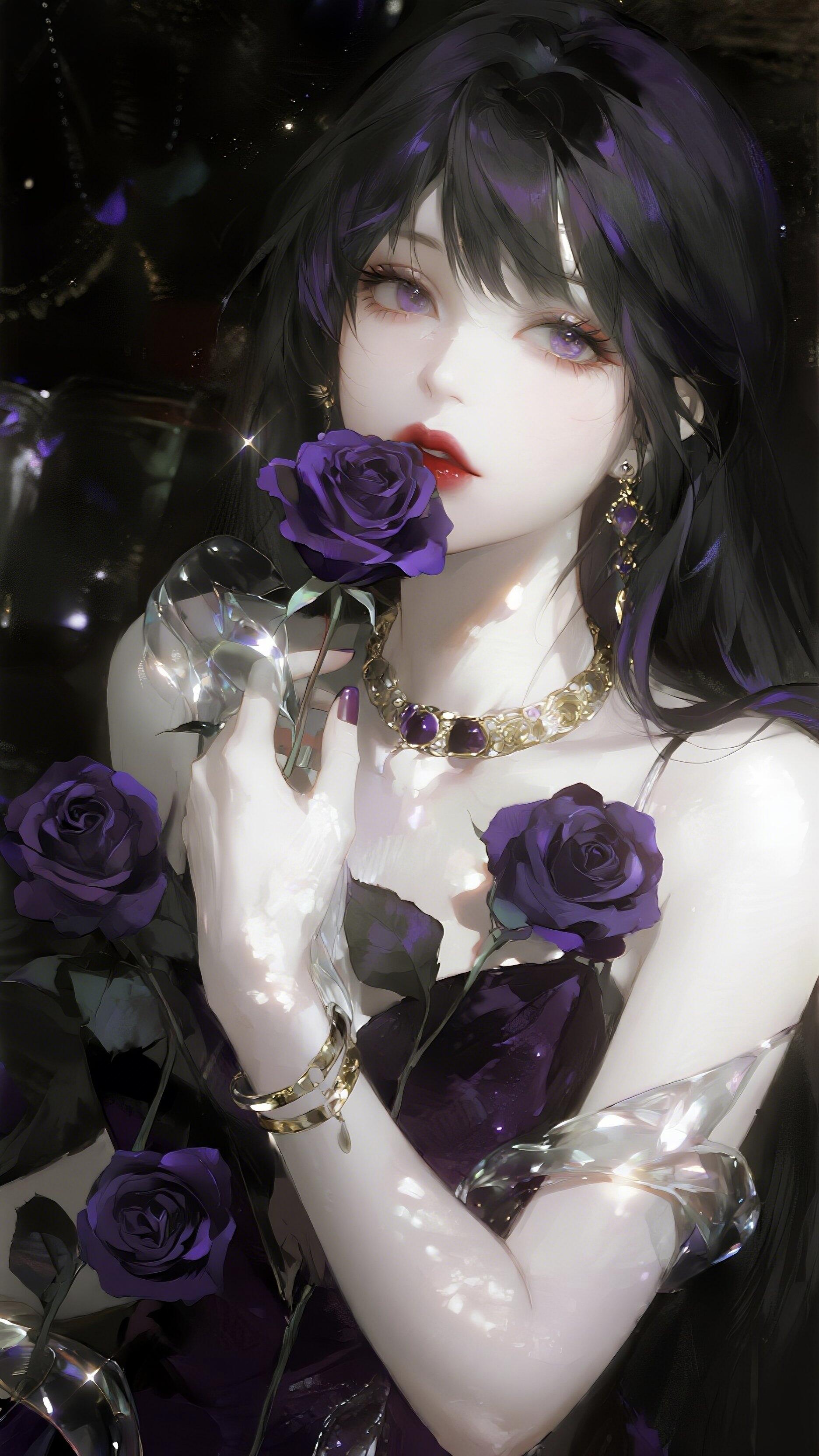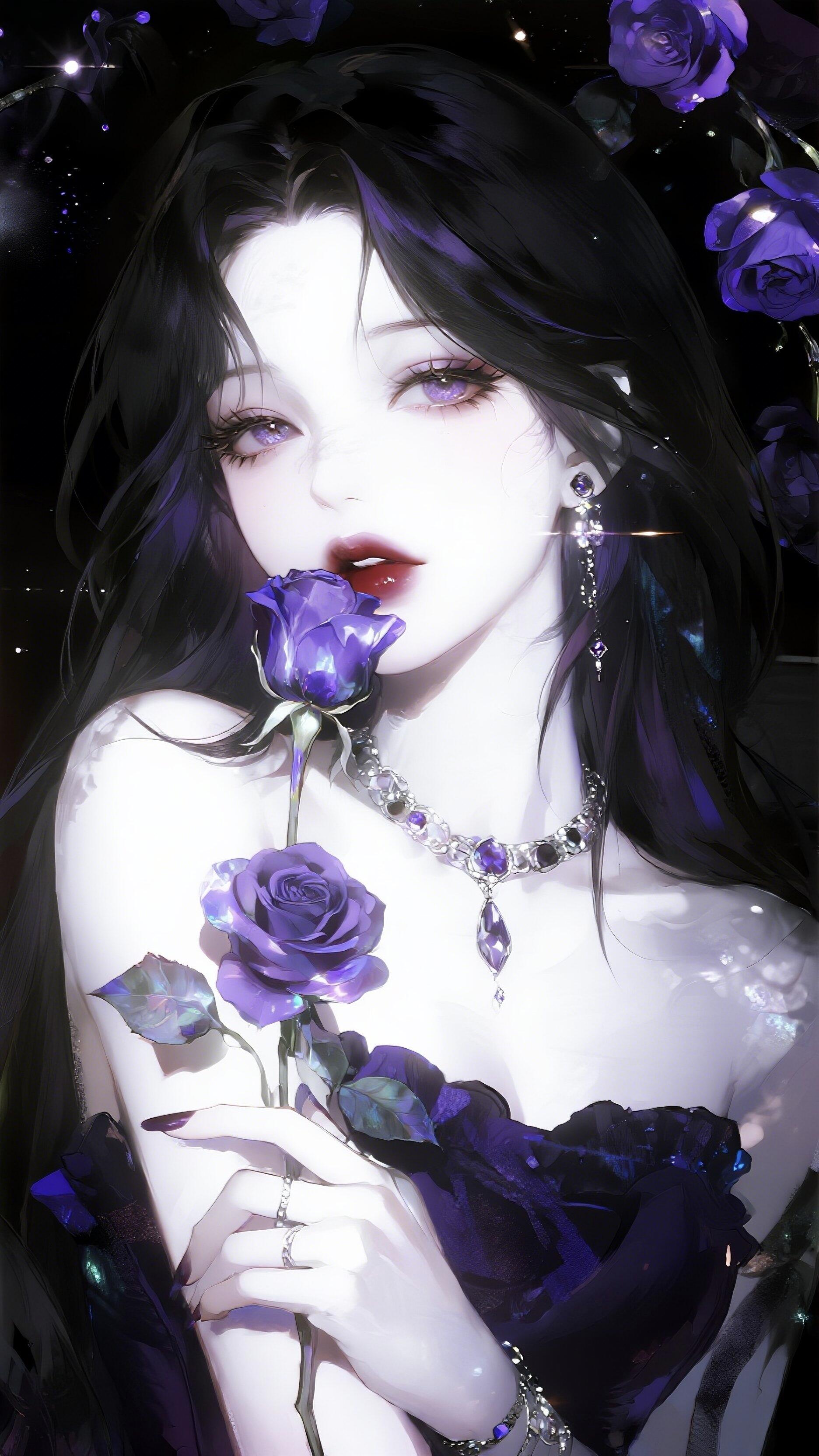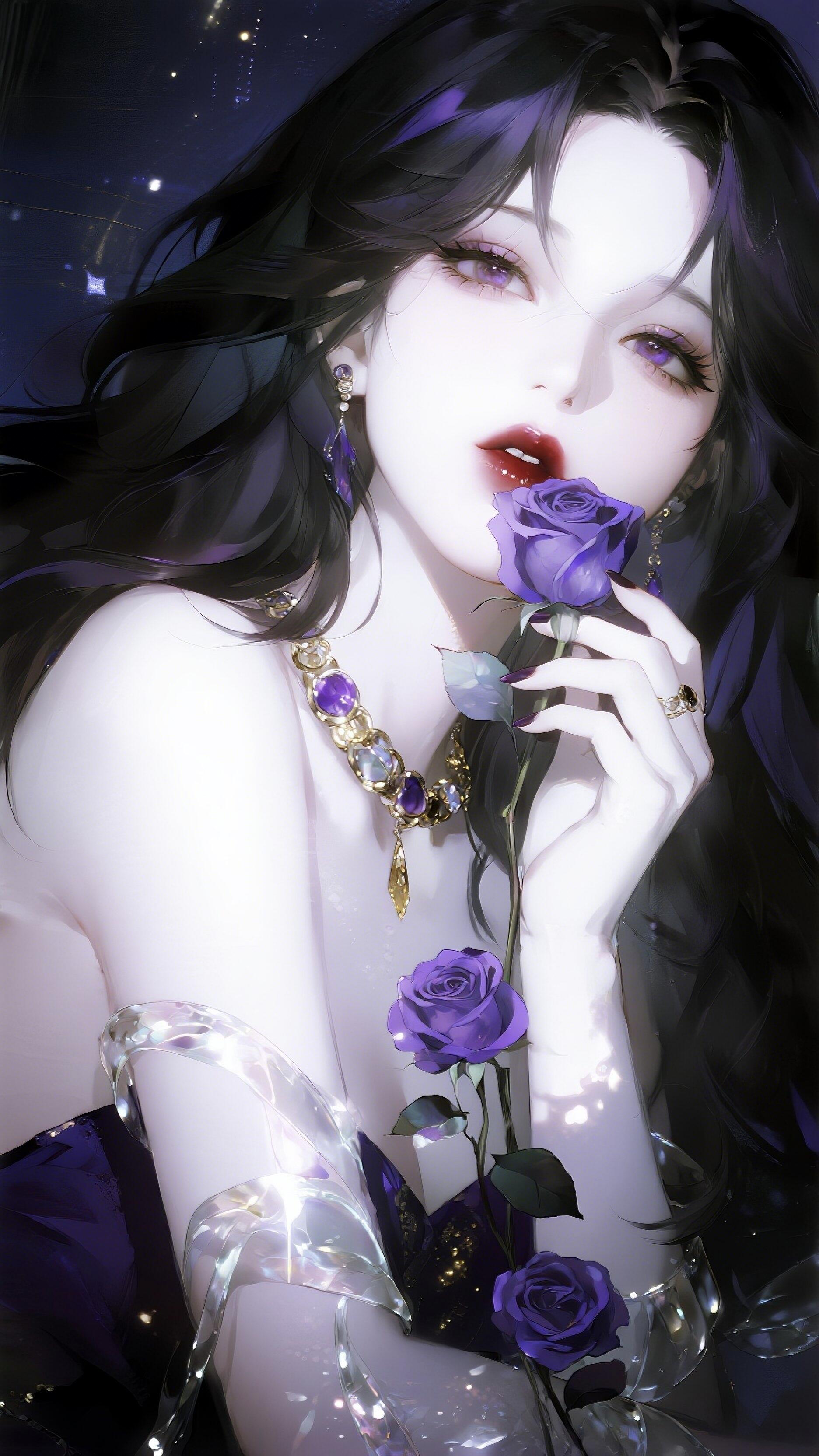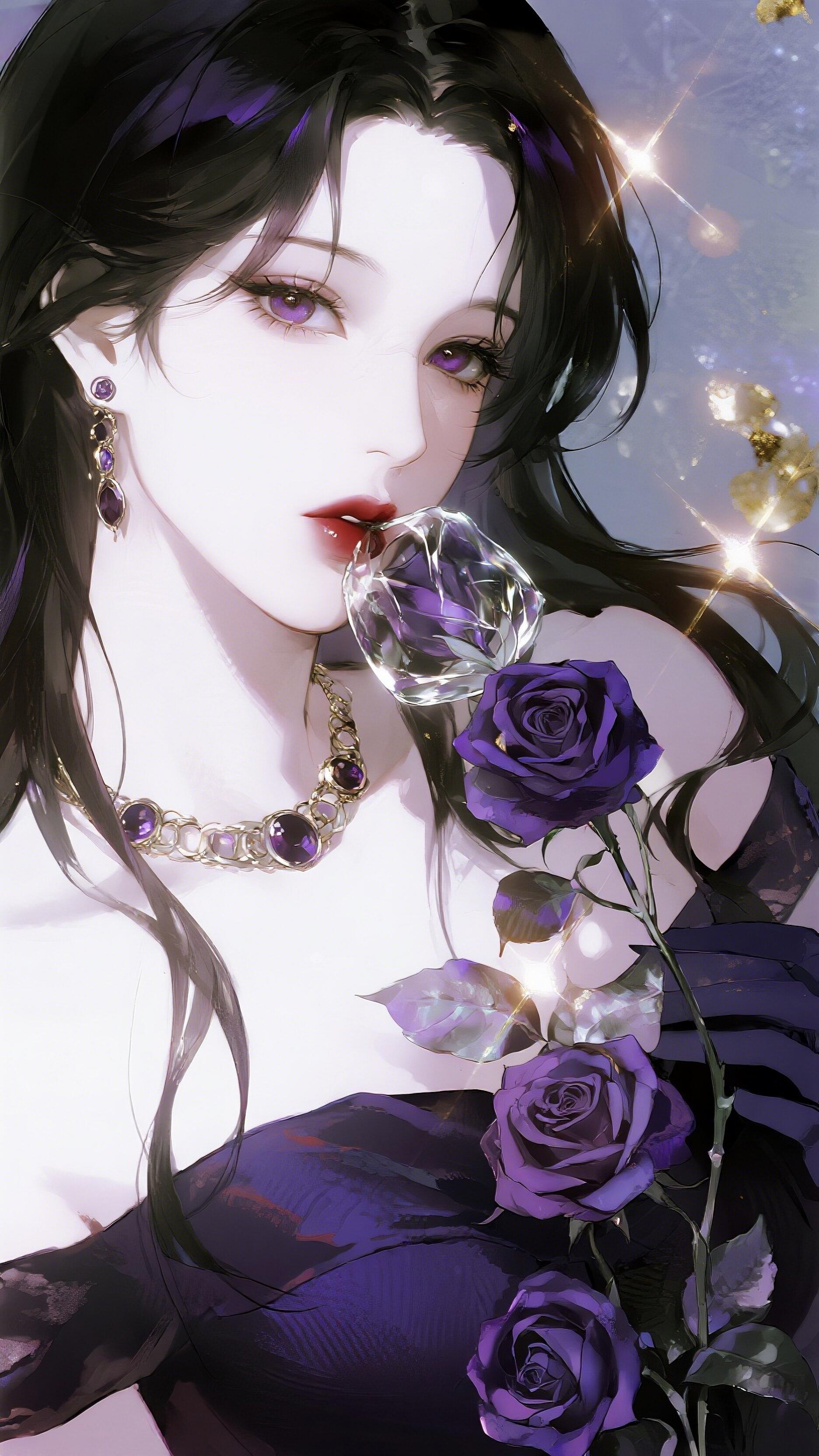 紫色系冷艳美人紫色梦幻女神 紫色衣服美女 深紫色长裙 紫色禁欲 紫色吊带美女