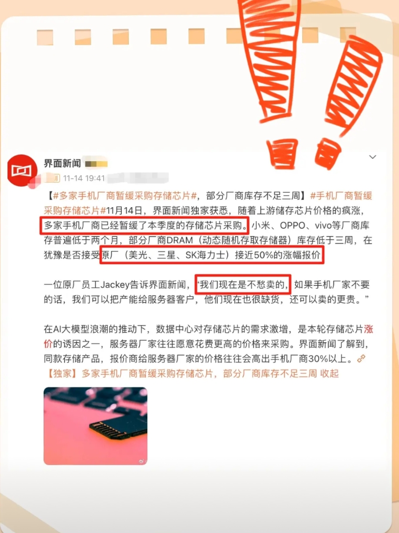 Reno15完全是给其他厂商挡枪的 就挺离谱的,刚看到新闻:上游存储芯片突然大涨