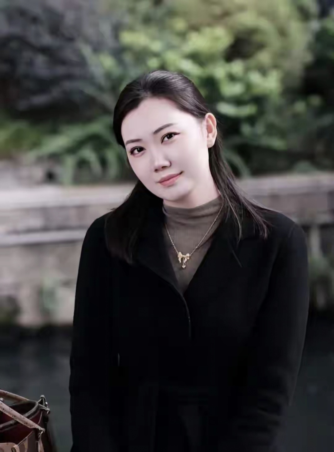 绝色美女乌黑亮发精致整洁,妆容细腻,眼神温和明亮,嘴角漾着浅笑意。浅色...