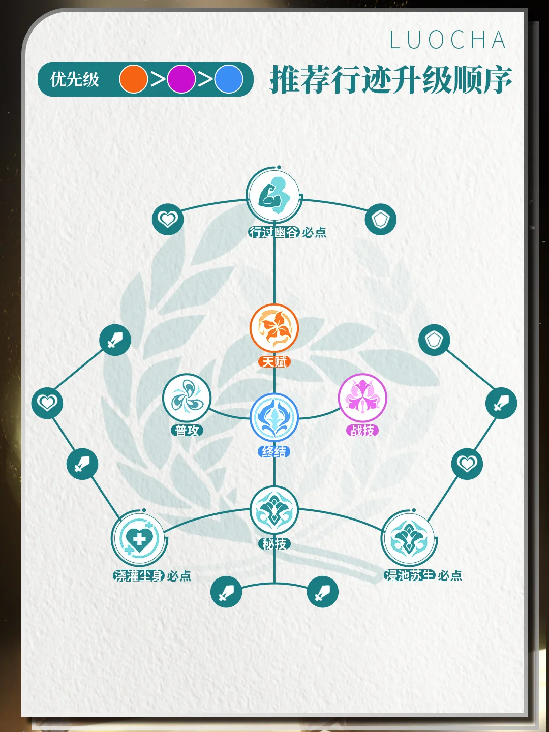 触发战技效果时,若指定我方目标当前生命值百分比小于50%,则罗刹提供的治疗量提高30%;若指定我方目标当前生命值百分比大于等于50%,则为其提供能够抵消等同于罗刹18%攻击力+240伤害的护盾,持续2回合。