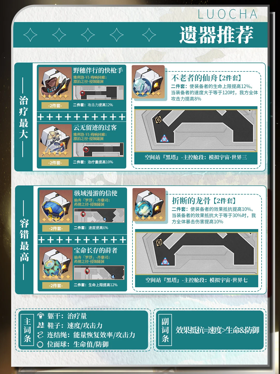 折断的龙骨【2件套】 二件套:使装备者的效果抵抗提高10%。当装备者的效果抵抗大于等于30%时,我方全体暴击伤害提高10%
