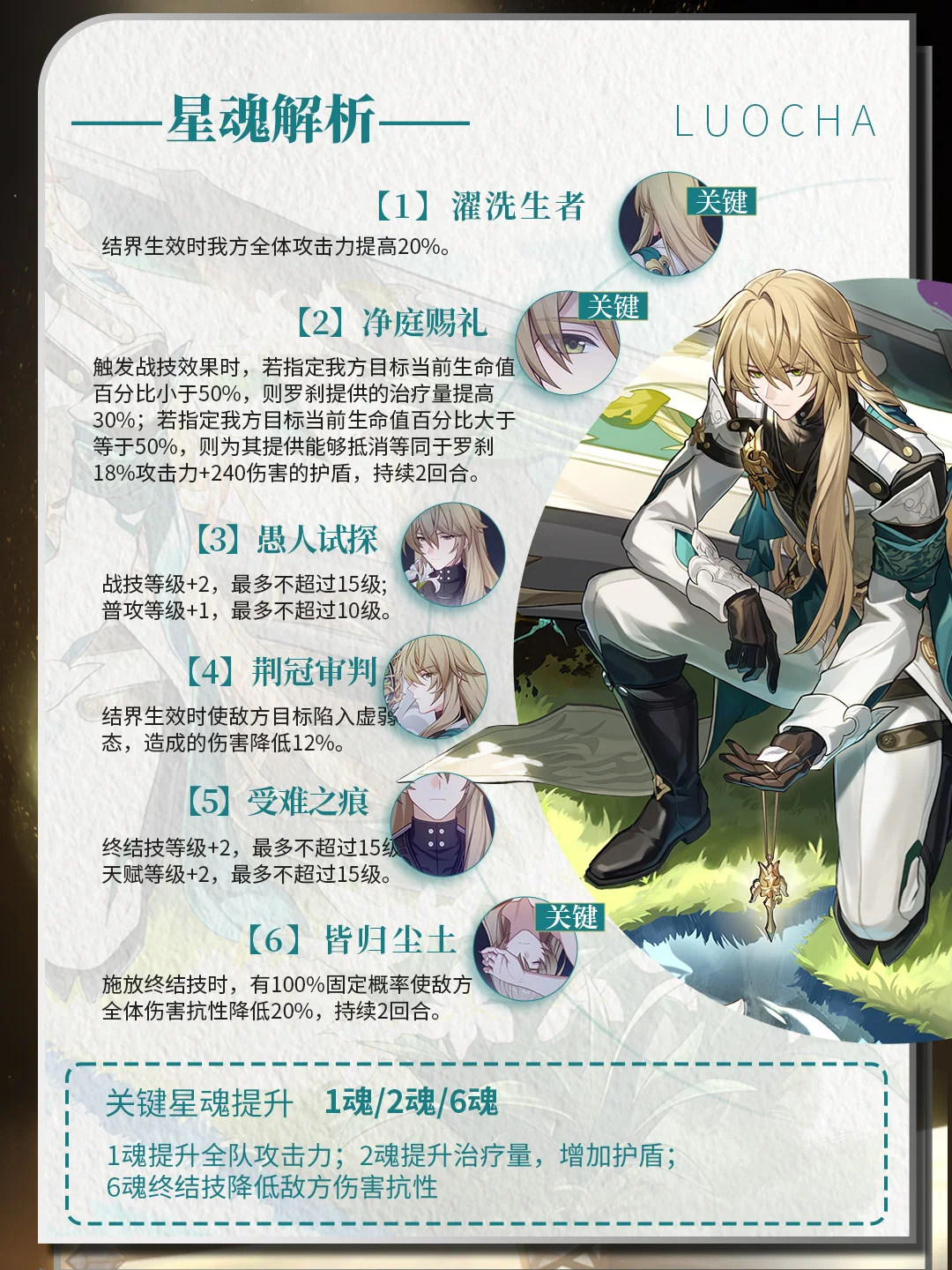 定位:罗刹是一名能为我方回复生命值,解除负面状态,并解除敌方增益的
