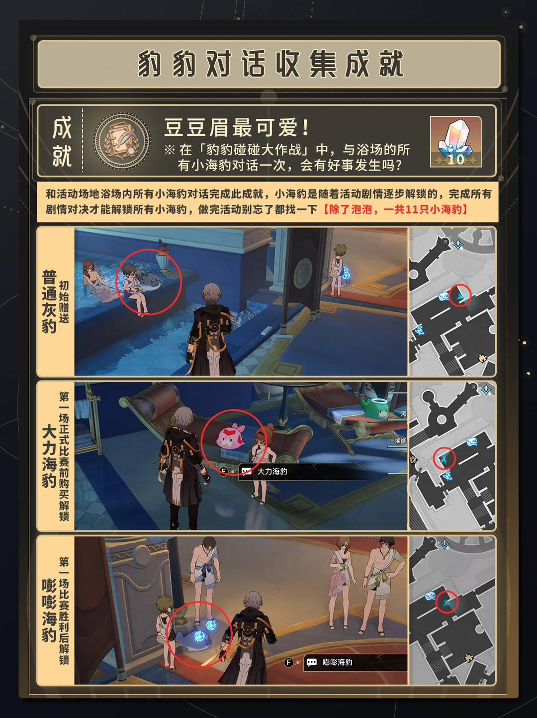 在「豹豹碰碰大作战」中,与浴场的所有小海豹对话一次,会有好事发生吗?