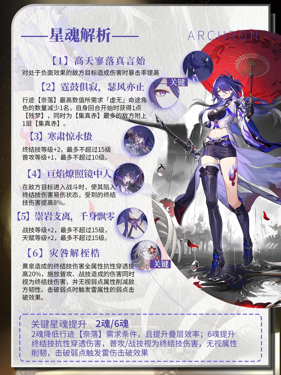 行迹【奈落】最高数值所需求「虚无」命途角色的数量减少1名,自身回合开始时获得1点【残梦】,同时为【集真赤】最多的敌方附上1层集真赤】。