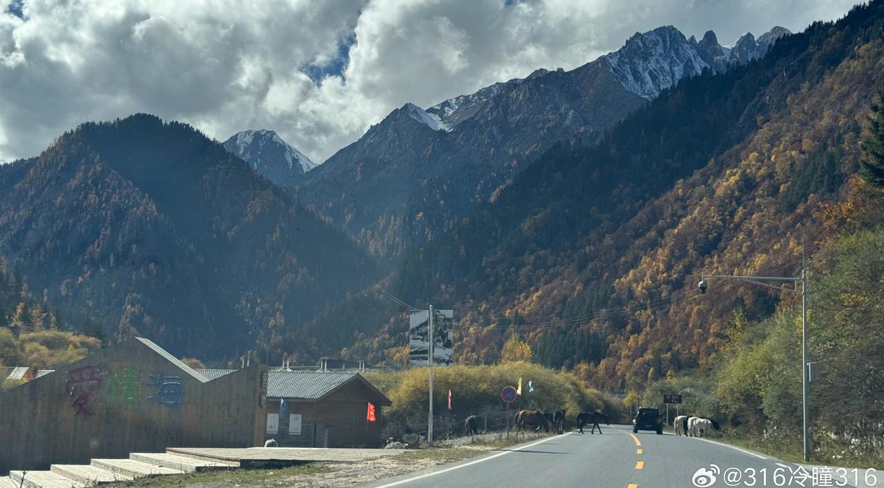 王一博[超话]每一步攀登都算数探索新境 记录第一次一个人高海拔自驾之2 图片是2025年11月7日下午,川西阿坝州黄龙风景区,来回28道拐后经甘海子等抵达黄龙已经下午15点半,缆车上去后,高海拔上上下下,应该有一点高反,也控制住了,终于抵达了这片土地,离开黄龙的路上还看到了美丽的落日余晖