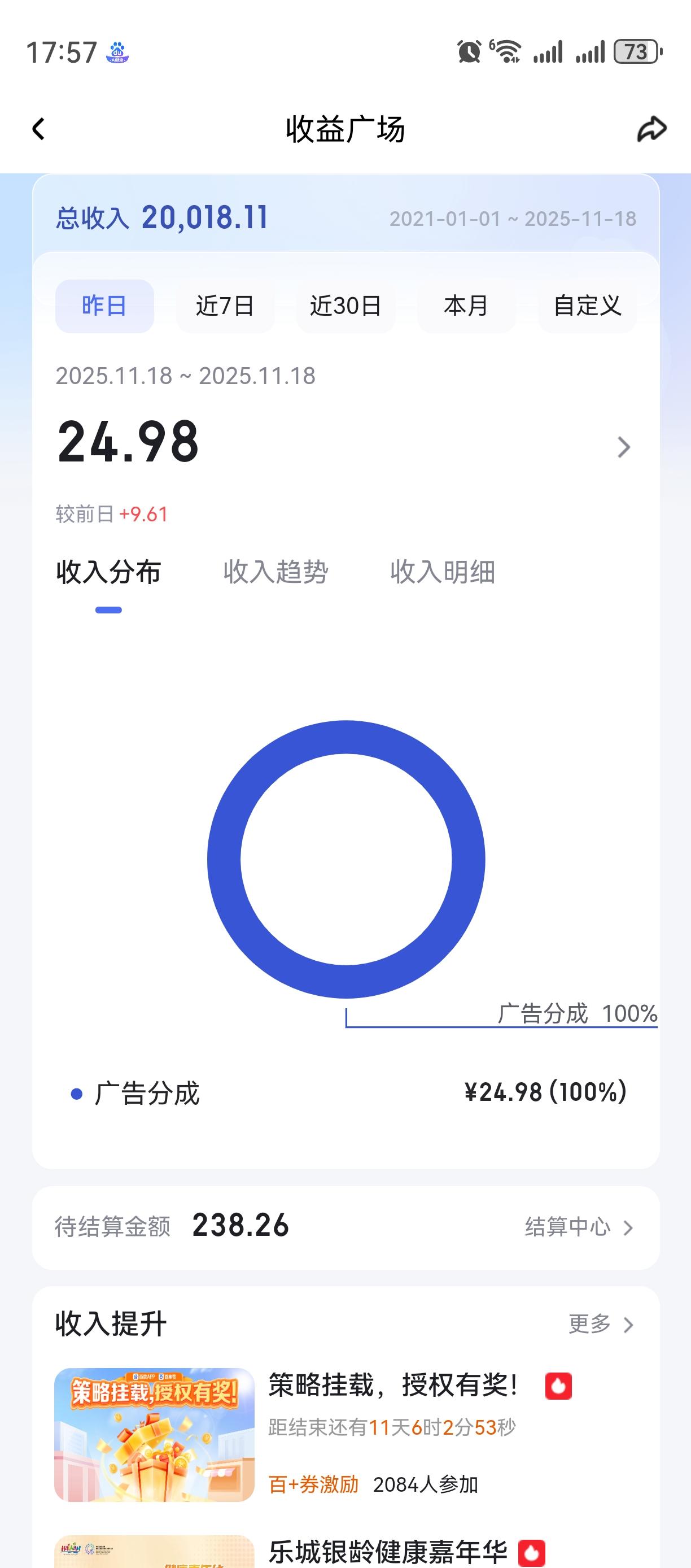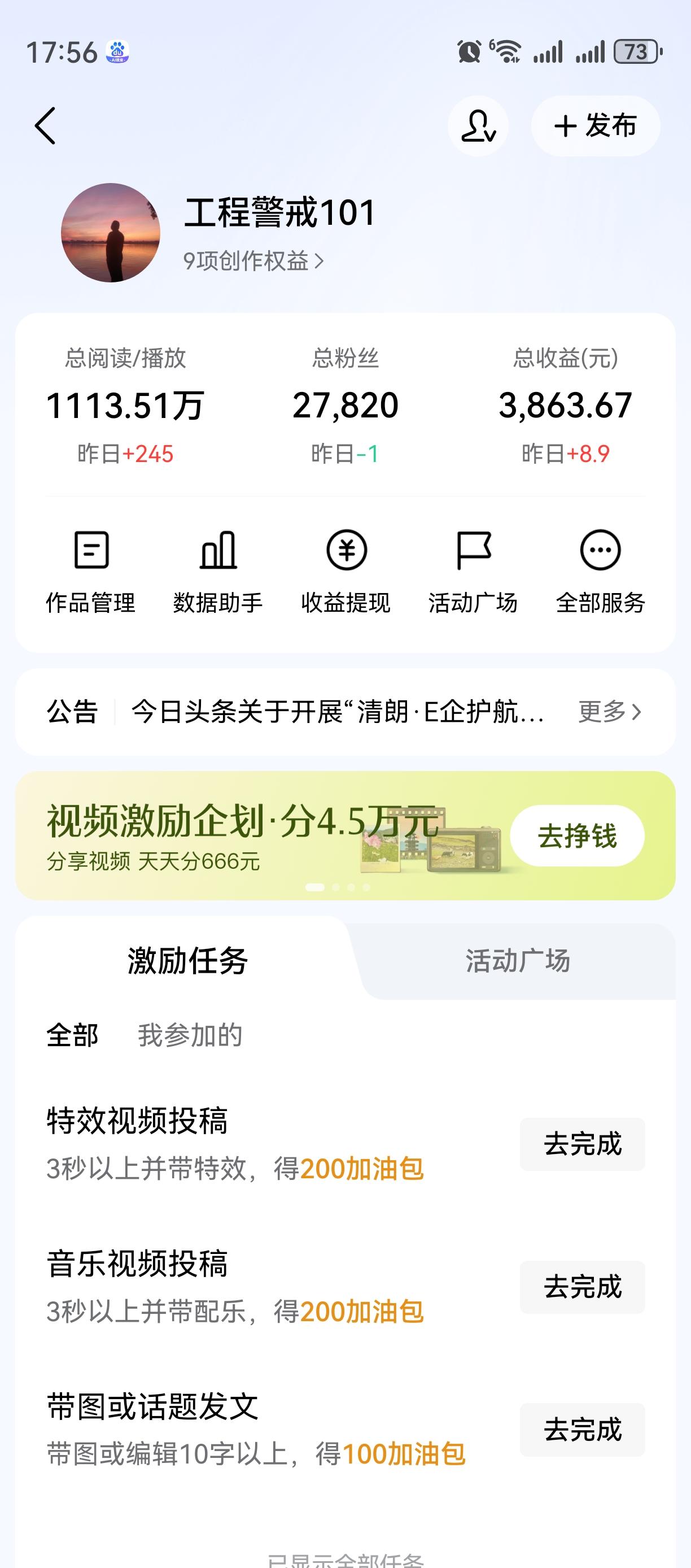 昨天百家号和头条的收益让我乐开花!百家号24块,头条8.6元,加起来够买一斤排骨咯。很多人可能觉得这点流量不起眼,但坚持下去真的会有惊喜。 就像我之前发的同一篇内容,头条发20分钟只有4个推荐、1个阅读,百家号却有1465个阅读。还有一次,我一篇图文在头条展现量4983,阅读量146个,收益才0.1元;发在百家号,推荐量17W多,阅读量4.33W,收益也不错。所以写头条时记得同步到百家号,说不定哪天收益就蹭蹭涨,大家快试试,评论区说说你们的收益咋样!