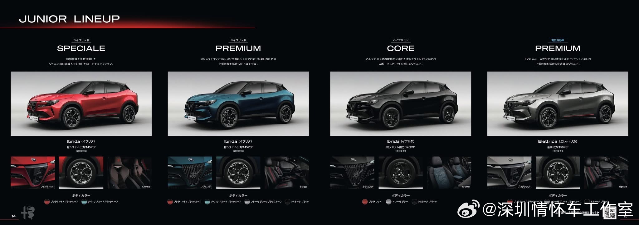 2026阿尔法·罗密欧Junior的中文名为“阿尔法·罗密欧少年”。阿尔法·罗密欧Junior是阿尔法·罗密欧品牌旗下的一款豪华紧凑级SUV。这款车最初被命名为Milano,后因生产地在波兰,不符合意大利法律中关于使用意大利地域相关名字命名产品的规定,故而更名为Junior。2026年,阿尔法·罗密欧推出了Junior Sport Speciale版本,进一步丰富了产品线。这车来到国内不知会不会水土不服。