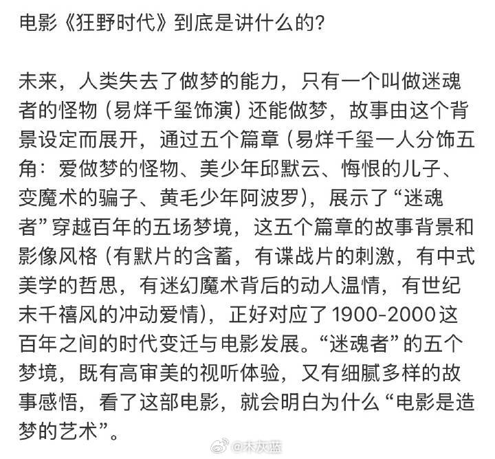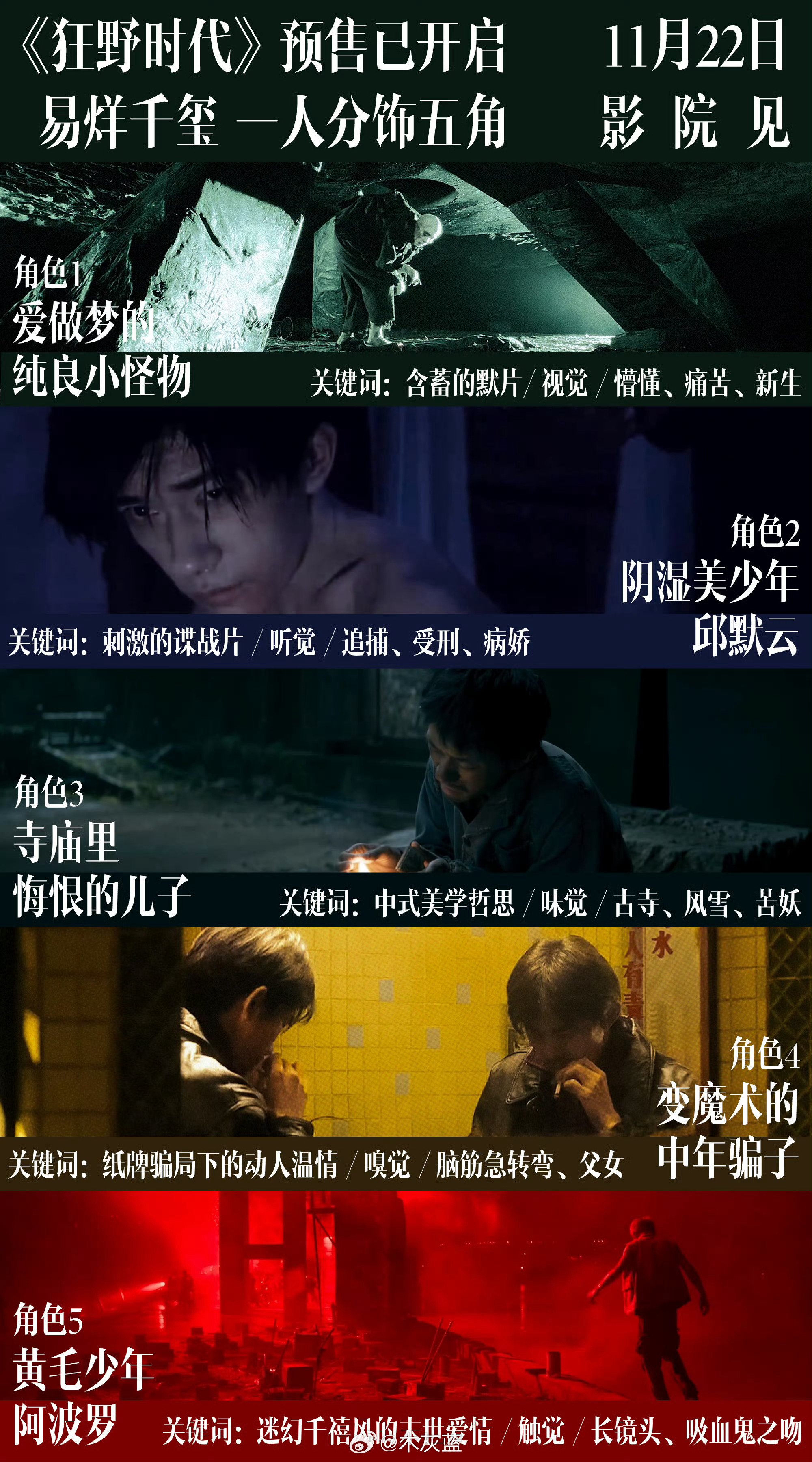 「狂野时代」预售票房跑的挺快的,才看到5000万战报,没一会儿又看到6000万战报了。-PS: 附一个粉丝制作的观影指南,便于提前了解这部“碎片化结构”“非线性叙事”的艺术电影。