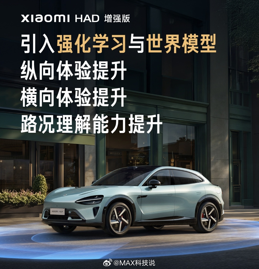 小米辅助驾驶HAD增强版,引入强化学习和世界模型,对细节进行了很多优化,后面还有更质变的。强化学习,在世界模型里面不断的模拟学习,在一定的规则之下,通过对的奖励和错的惩罚机制,去积累经验、不断优化改善驾驶能力。其实很像考驾照的过程。小米辅助驾驶起步晚一点,但是一年多,从1000万clips版本,到现在都在进步。 小米手机积累的软件能力和投入决心,不用担心