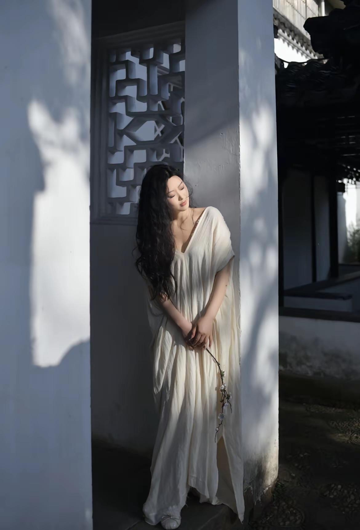 古风美女漫步庭院,轻纱飘逸,花影摇曳,岁月静好。你若盛开,清风自来,如沐春风,我心安好,便是晴天🌞