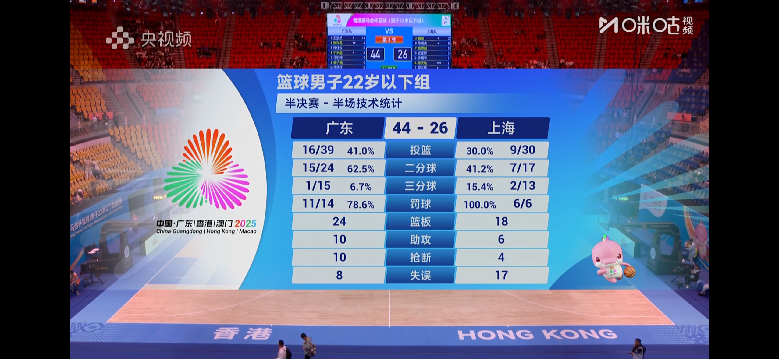 半场结束,上海队55比52领先浙江队。李悦洲几乎无差别单打+无死角进攻,半场拿到