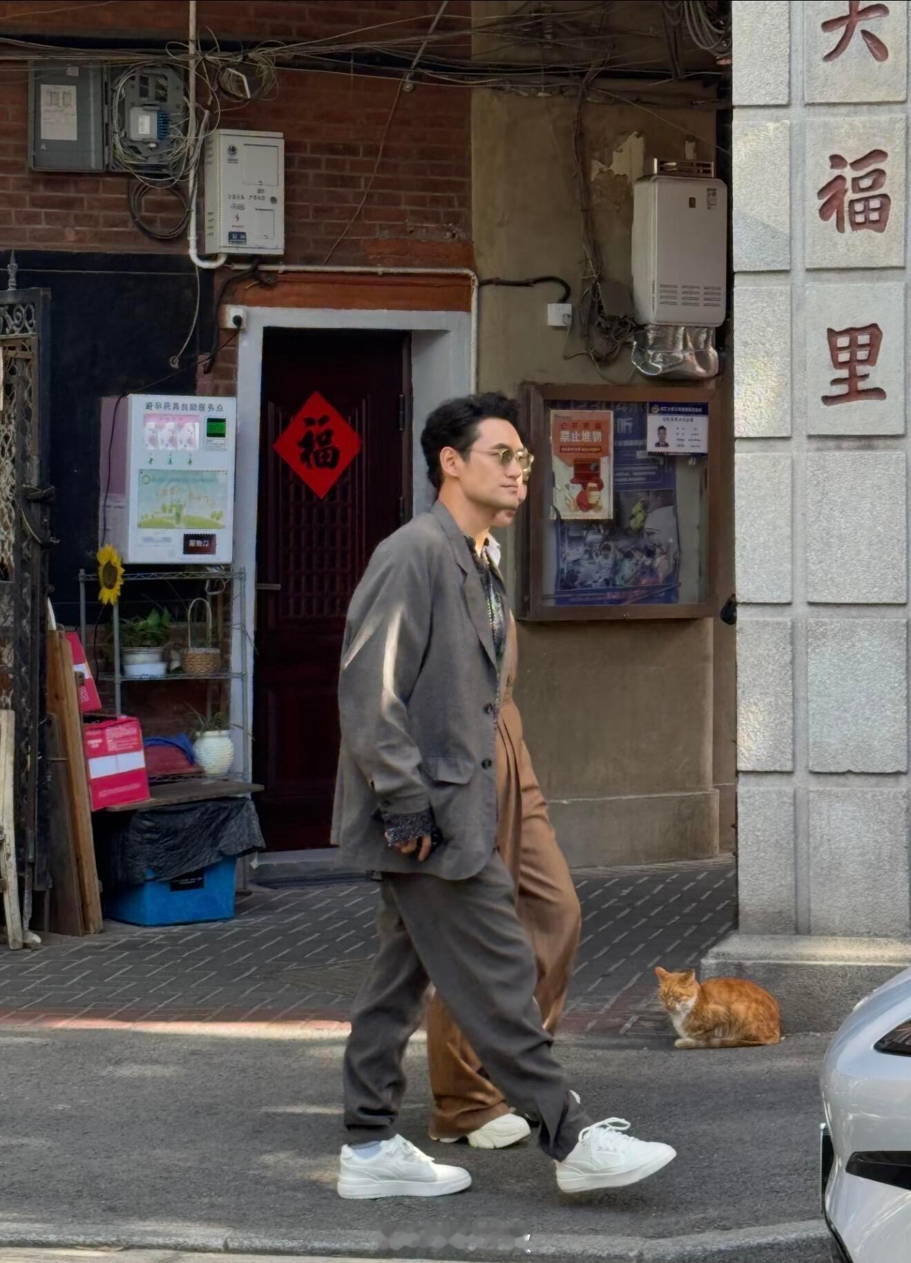 影帝背后的男人,和王背后的女人,搭档拍摄了近日,有位网友在上海偶遇袁弘与田朴珺,两人在某社区拍摄活动。袁弘与田朴珺边走边聊,一只眯着眼的橘猫,可爱入镜,给画面增添了一丝乐趣,嘻嘻!