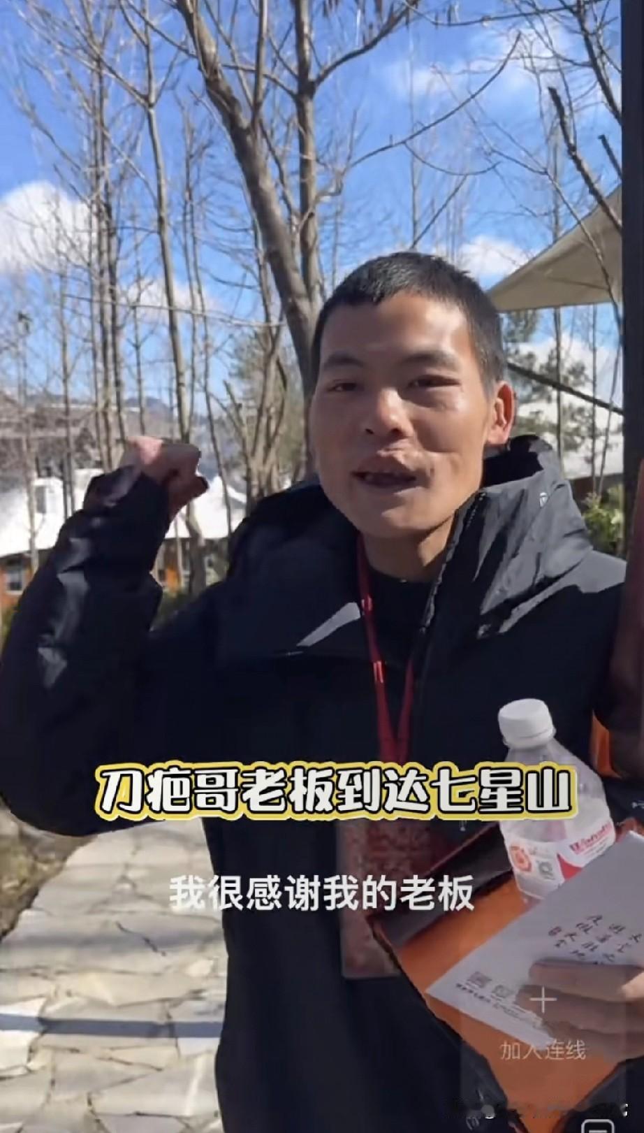 刀疤哥贵人现身,猛夸的老板! 刚在七星山撞见刀疤哥的“幕后恩人”——就是这位穿黑外套的大哥,刀疤哥攥着水激动喊“要不是他帮我报名,我根本来不了”。 镜头里刀疤哥拍着老板肩膀夸“威武霸气”,评论区肯定有人酸:“这是老板给员工铺路,还是节目组找的‘人情剧本’?”毕竟荒野赛突然冒出来的“老板助力”,也太像安排好的桥段了。 有人说这是“职场暖心时刻”,也有人吐槽“比赛掺人情,是不是对其他选手不公平?” 话说回来,这波“老板探赛”是真兄弟情,还是为了热度硬凑的戏码?你觉得这人情世故,该不该出现在荒野赛场上?