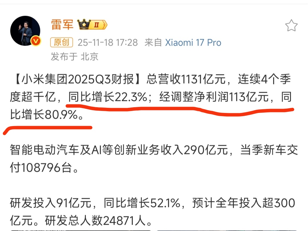 第一财经日报发文称,小米手机收入和均价下滑,而且这次发文之后还直接关闭了评论!其实我看完小米三季度的财报,营收再创新高,利润增长超预期。但是第一财经只盯着手机单项收入,却看不到小米从一家手机公司变成了“人车家全生态盈利体”的大爆发。要知道,现在小米汽车盈利、然后生态也在不断扩张,这是许多公司求都求不来的成绩!关评论给我的感觉就是“怕被打脸”的意思吧?