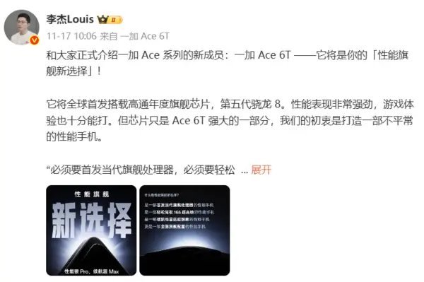 【高通官宣第五代骁龙8移动平台 将于11月26日正式发布】高通官微正式宣布,将于11月26日发布全新骁龙8系旗舰移动平台新成员——第五代骁龙8移动平台。该公司以“8气内核,旗舰本色” 为宣传语,预示着这款新品将继续巩固其在高端移动芯片市场的地位。根据最新爆料,第五代骁龙8移动平台预计采用台积电3nm工艺(N3P制程)打造。这一先进制程将为芯片带来更优异的能效表现,兼顾性能与功耗控制。在CPU架构方面,第五代骁龙8移动平台可能搭载Oryon CPU架构,配备2个3.8GHz的超大核心和6个3.32GHz的大核心,组成8核设计。图形处理方面,它或将集成Adreno 840 GPU,为高帧率游戏和图形密集型应用提供强劲支持。一加Ace 6T将全球首发搭载第五代骁龙8移动平台。一加中国区总裁李杰表示,Ace 6T不仅是一款性能旗舰,更将配备超8000mAh的大电池。值得一提的是,vivo S50系列也被爆料将搭载这款芯片。根据泄露的信息,vivo S50系列内部代号为“战斗天使”,主打芯片、影像和体验三大旗舰特性,已通过3C认证并支持90W快充。vivo S50系列预计将于12月在中国市场率先发布,随后可能在全球市场以不同名称推出。爆料还提到,vivo S50 Pro Mini可能配备超过6040mAh的大容量电池,并在指纹识别技术上从光学升级为超声波方案。