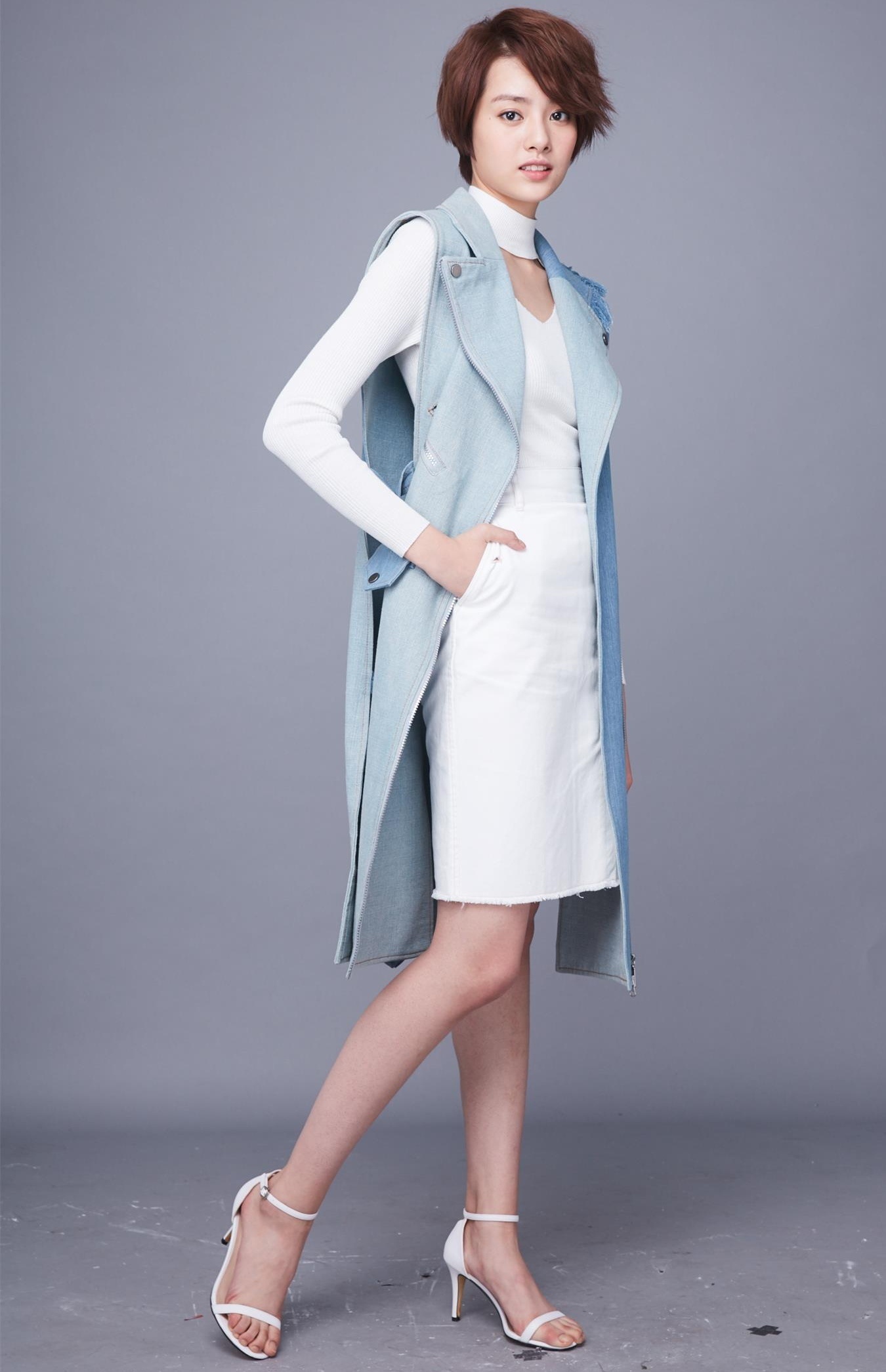 张艺上,白色一字带高跟鞋妆造,轻淑迷人