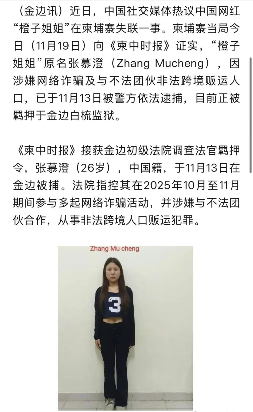 娱乐[超话]网红橙子姐姐在柬埔寨涉诈被抓 橙子姐姐居然参与电诈,怎么会这样啊,现在想想也真的是细思极恐,一直在黑马情侣身边的朋友居然涉诈,真是知人知面不知心啊[允悲]