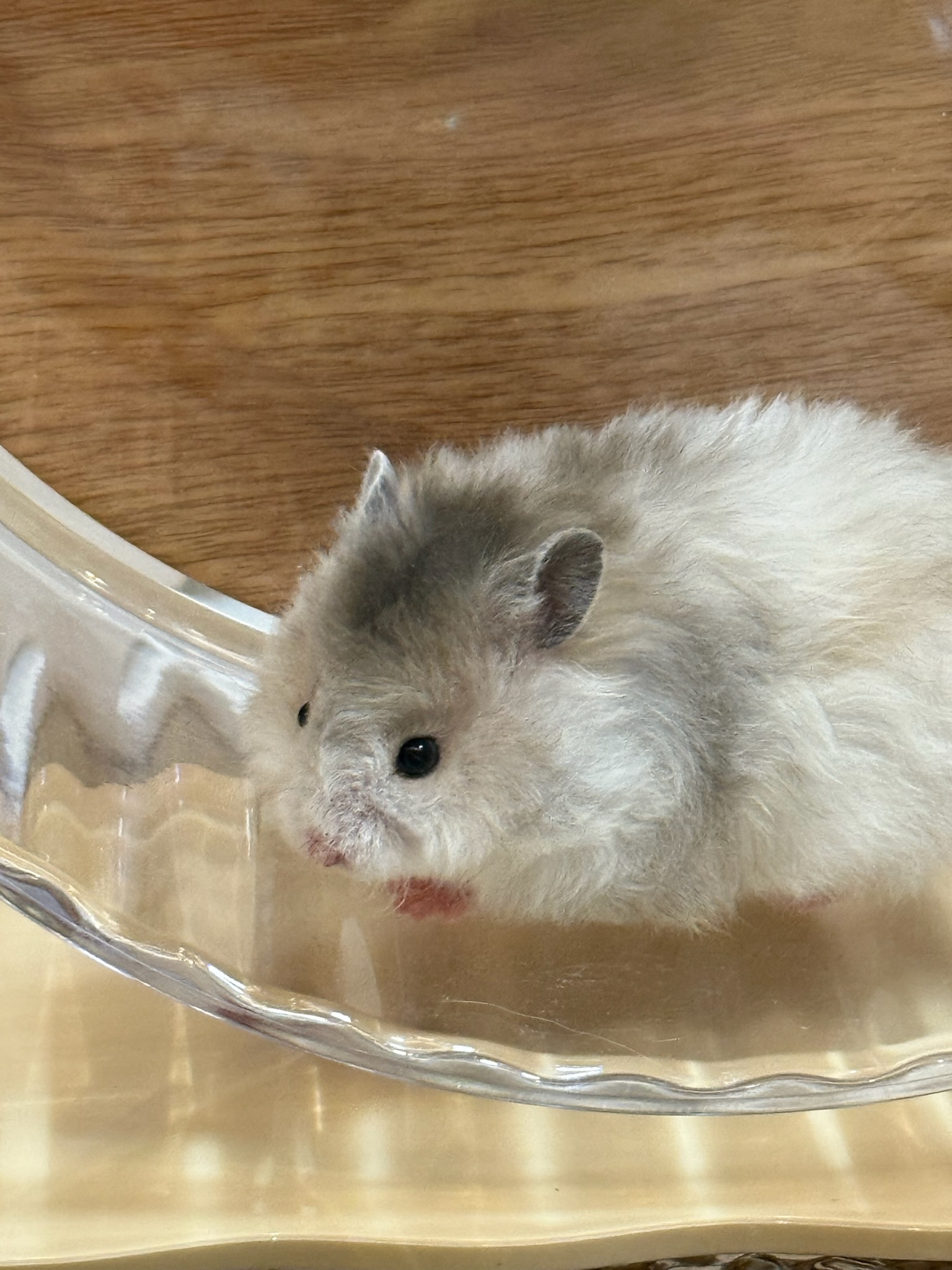 养了一只超级可爱的金丝熊,还是卷毛的!给它取名叫麻薯,朋友说莫名有点像Meta,