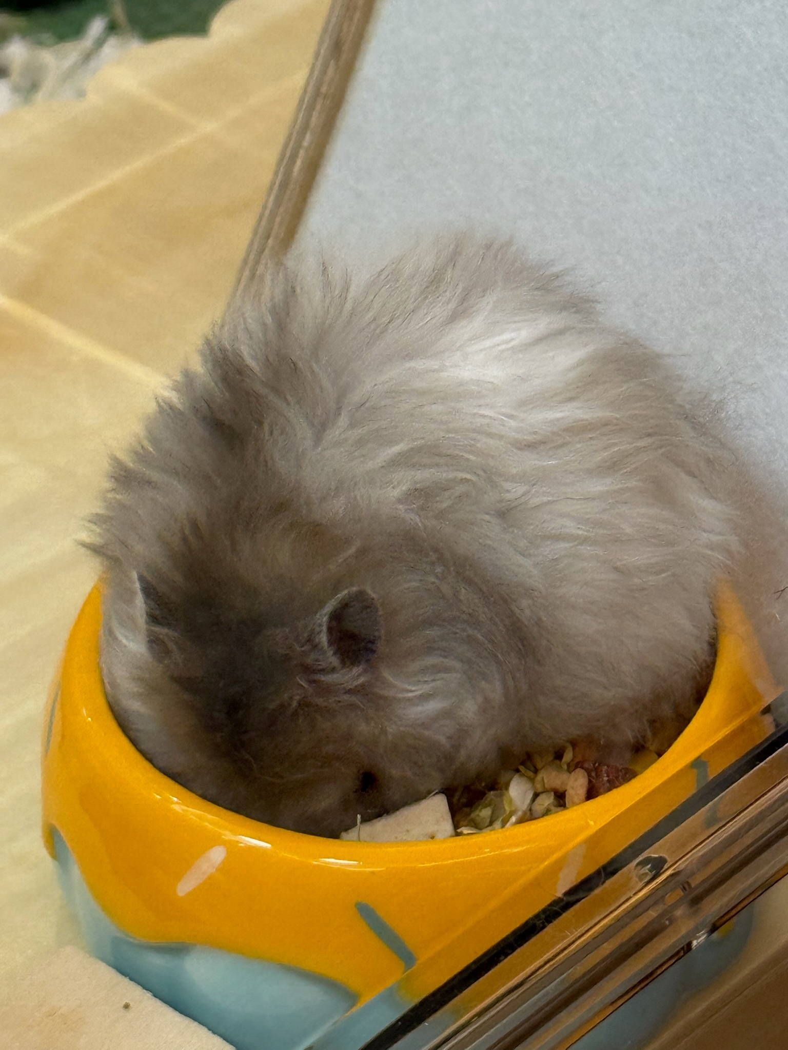 养了一只超级可爱的金丝熊,还是卷毛的!给它取名叫麻薯,朋友说莫名有点像Meta,不过颜色确实是同色系的hhh