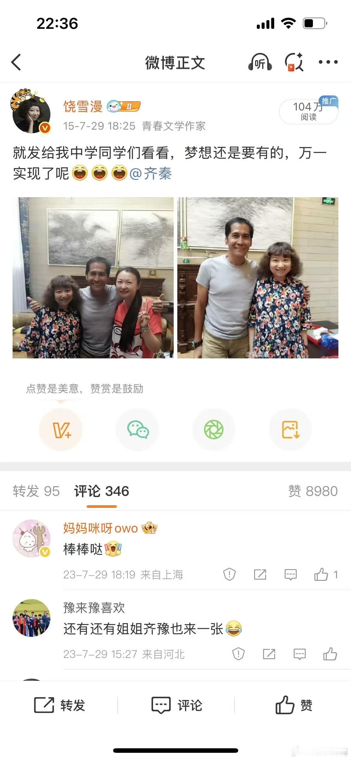 饶雪漫追星追出别样精彩!和齐秦10年兄妹相伴,情谊深厚。齐秦11月22日澳门开唱,她发一天动态,让经典老歌更有温度!