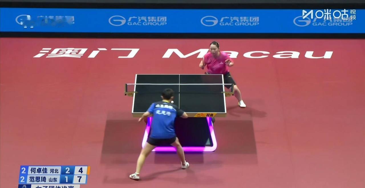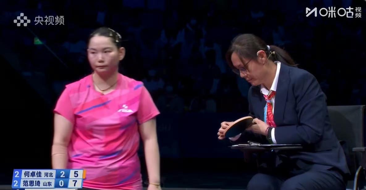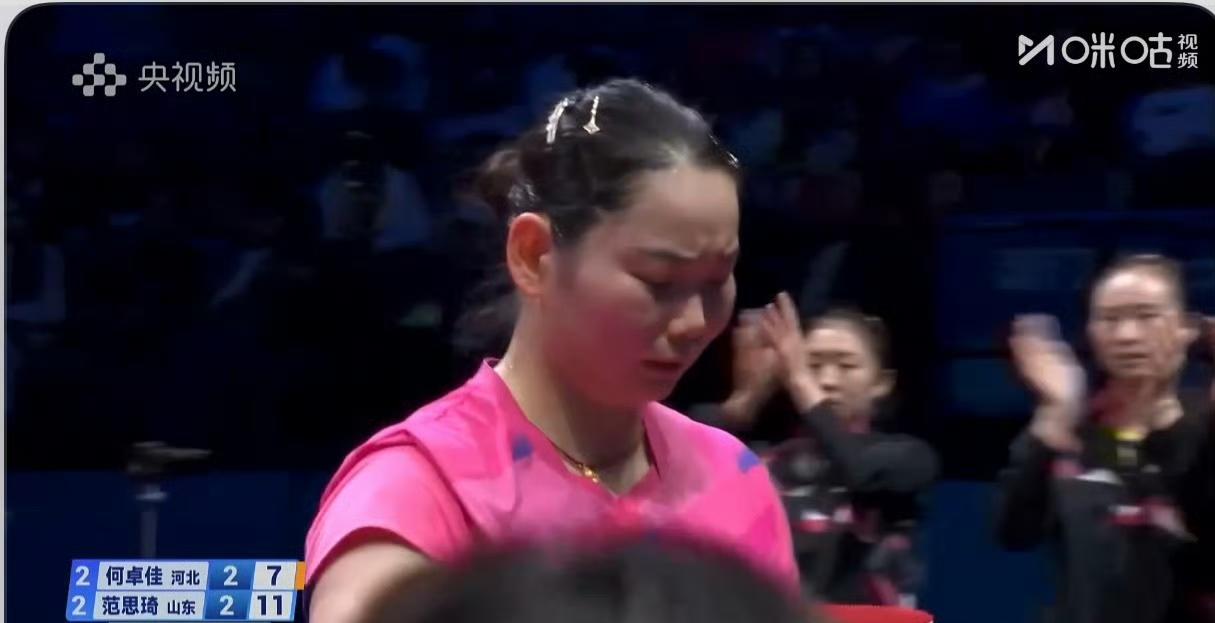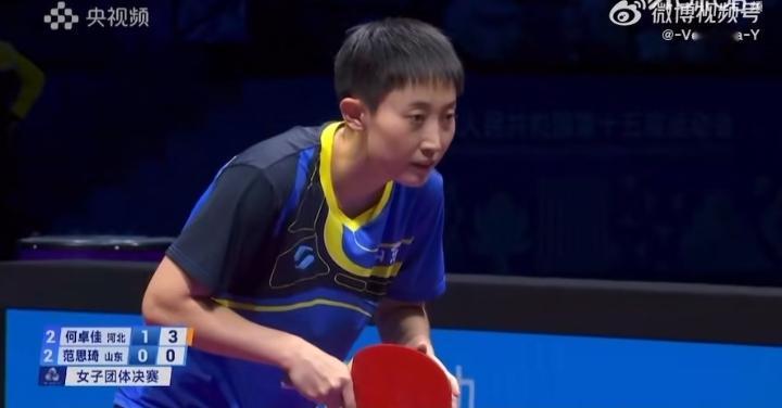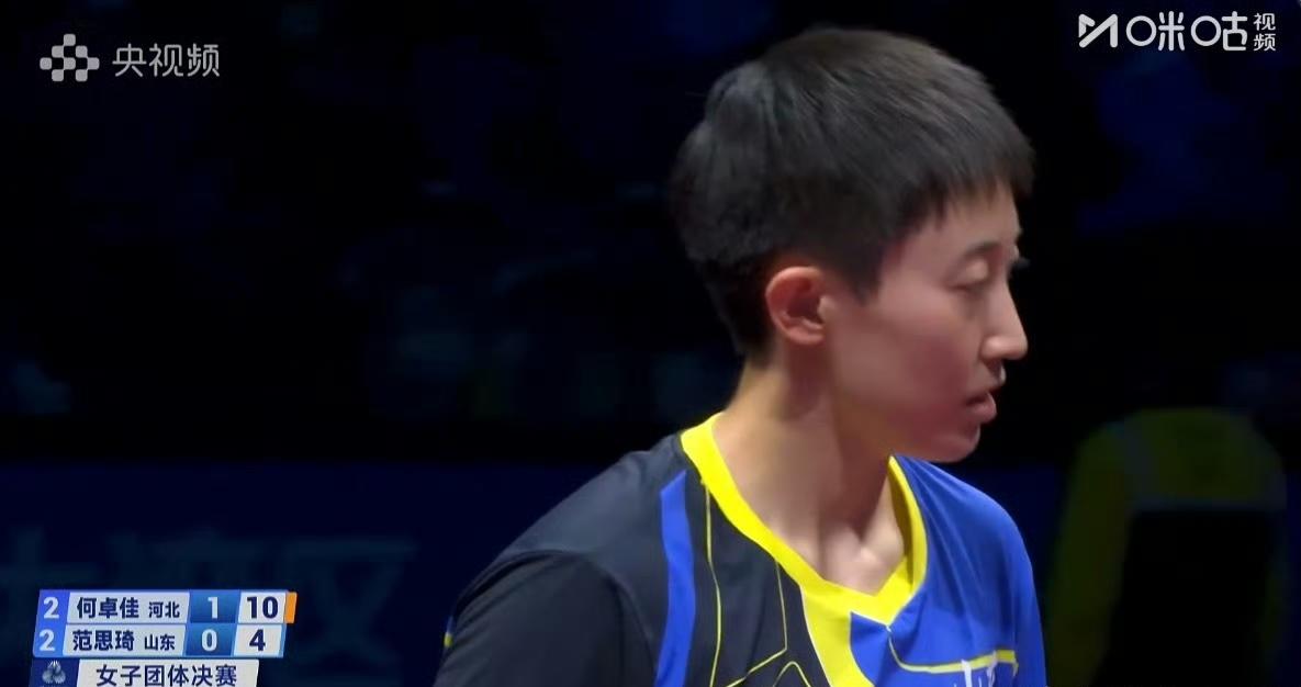 决胜局范思琦5-4领先何卓佳! 很显然范思琦已经适应了何卓佳,佳佳还没有新战术。 范思琦确实找到一些方法,她不主动发力了,就是跟你黏住, 看谁先失误, 然后发逆旋转的球。 这是2025年全运会乒乓球女团决赛,目前河北队2-2山东队! 评论区继续播报战况!