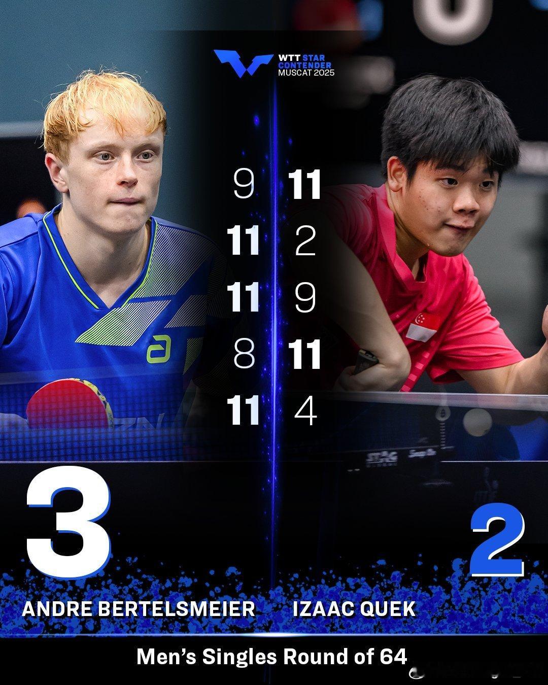wtt:年轻的德国选手安德烈·贝塔斯迈尔艰难取胜! 🔒✨他以3比2险胜郭勇,将在32强赛中对阵篠塚大登! 😲