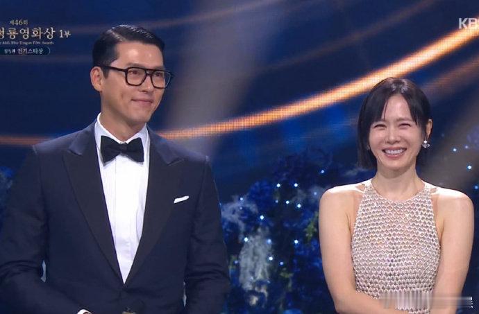 青龙电影奖现场,孙艺珍玄彬坐一起,一起拍手的时候,连动作都透着默契,真夫妻就是甜。
