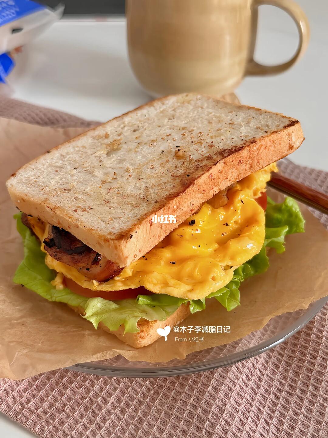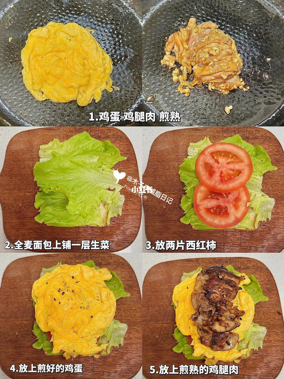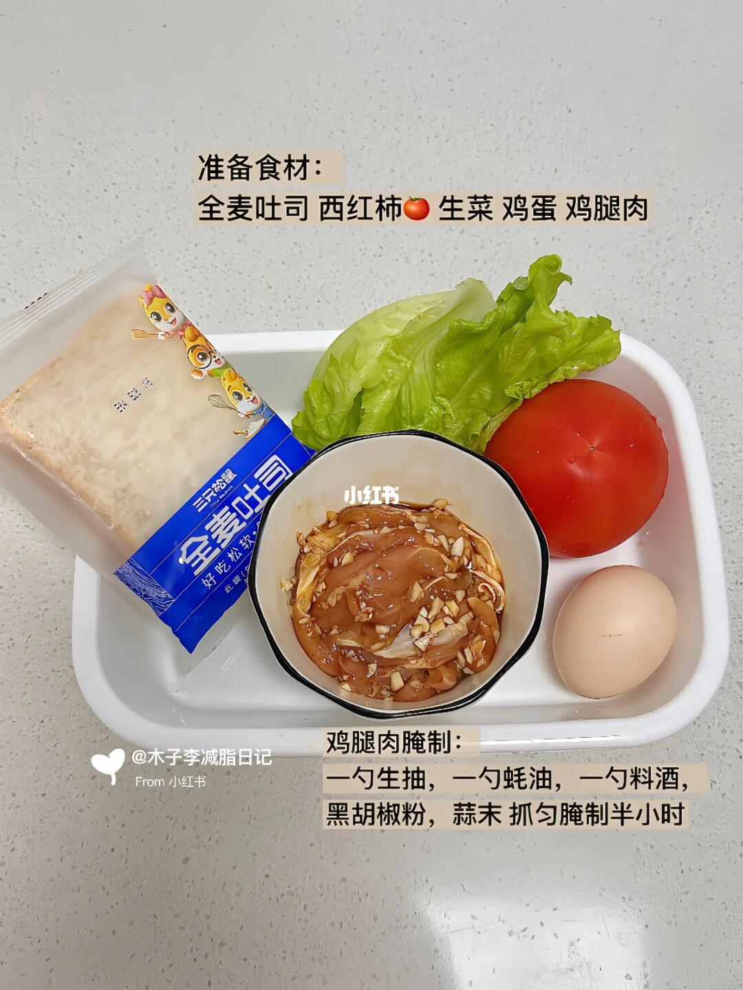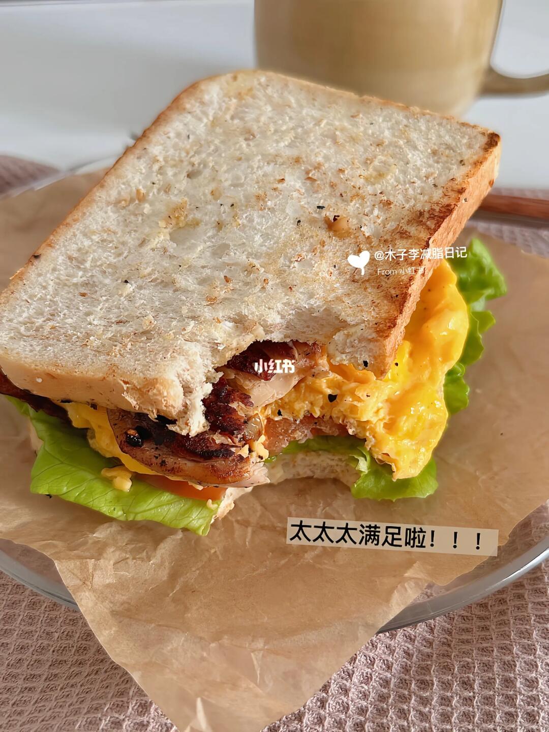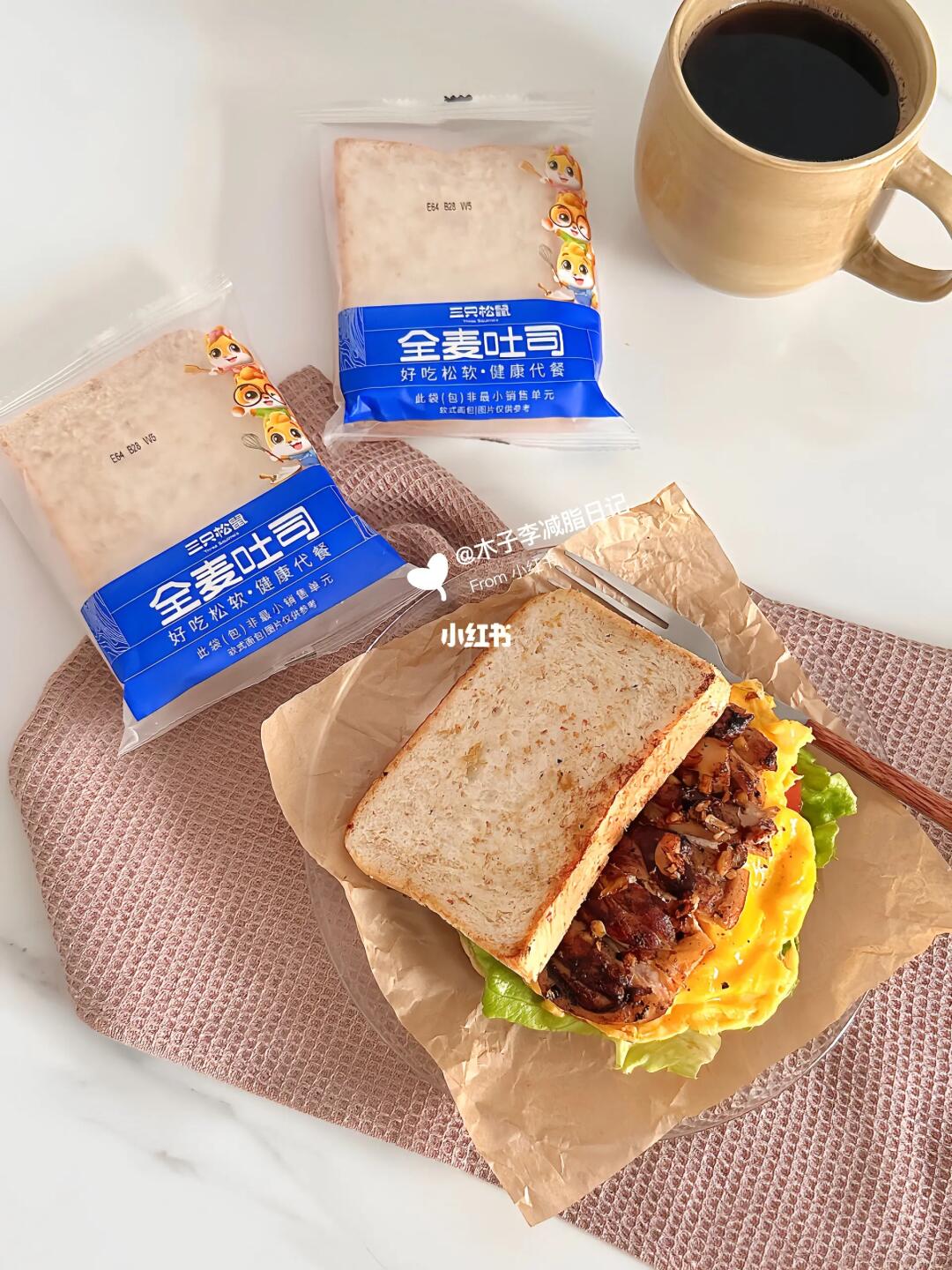 准备食材:全麦面包,鸡蛋,生菜,去皮鸡腿肉,西红柿 1️⃣准备一片全麦面包 2️⃣腌制好的鸡腿肉,鸡蛋煎熟 3️⃣把准备好的食材一层层铺在面包片上即可 真是简单好吃又低脂!一口下去有菜有肉口感超丰富 再搭配一杯咖啡☕整个上午都不饿! 全麦面包真的是减脂人必备的,被种草的三只松鼠全麦面包,0蔗糖添加 饱腹感强还低负担,粗粮的口感越嚼越香 单独包装的外出方便带着~ 最喜欢吃面包了 可以各种diy吃法!