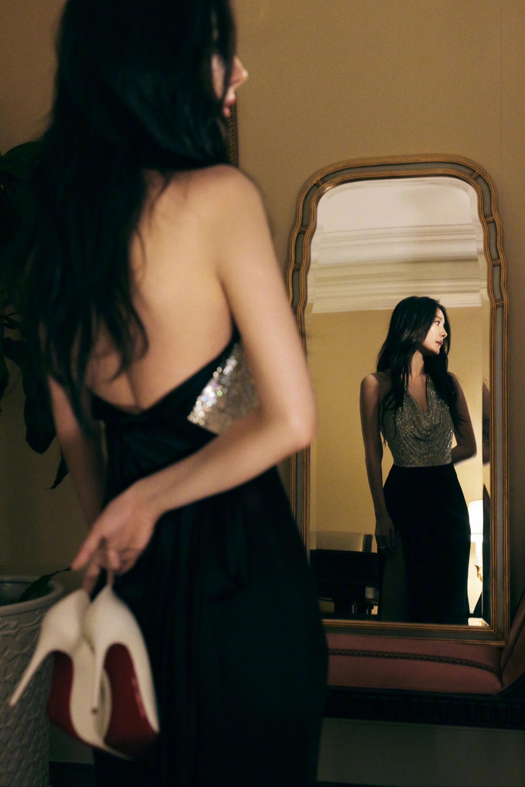 倪妮这组照片太有感觉了,开叉抹胸裙,高跟鞋,大长腿